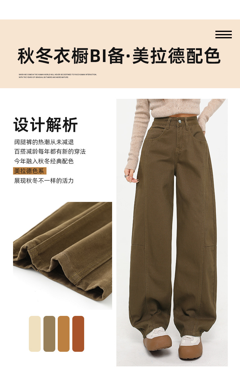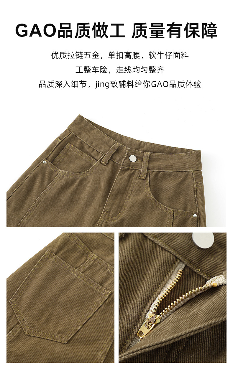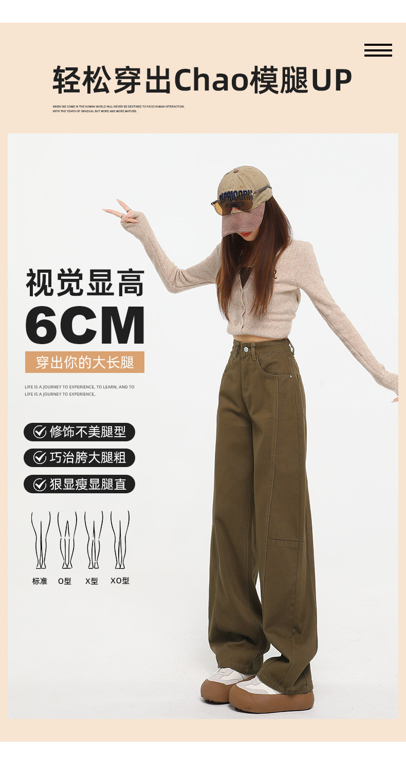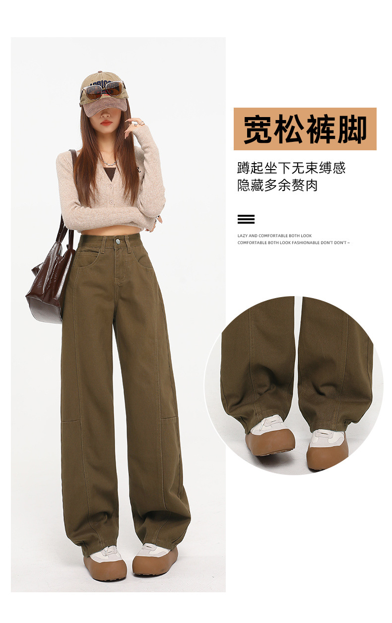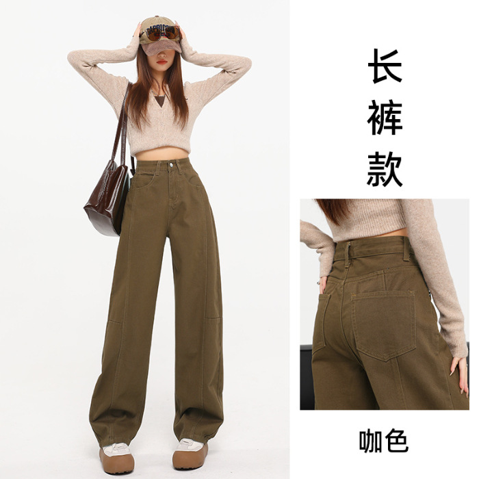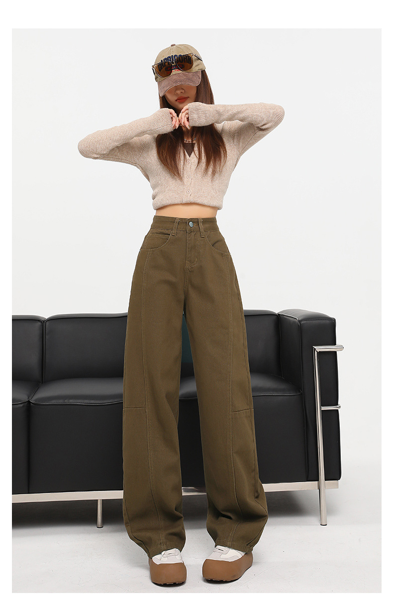 다크 브라운 스트레이트 레그 청바지 여자 2025 년 봄 새로운 높은 허리 슬리밍 미국 레트로 Scimitar 와이드 레그 바나나 바지스토어 가기