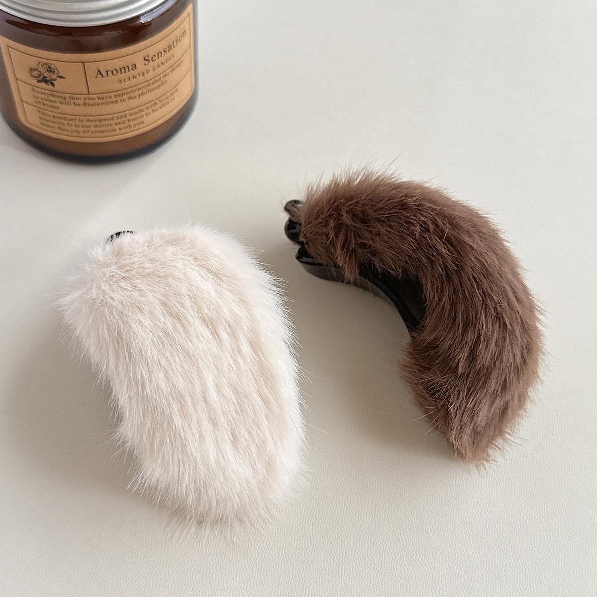 가을과 겨울 봉제 한 단어 트위스트 클립 모방 밍크 헤어 다크 브라운 게으른 헤어 클립 메일러드 한국식 올매치 하이 엔드 센스 헤어 클립