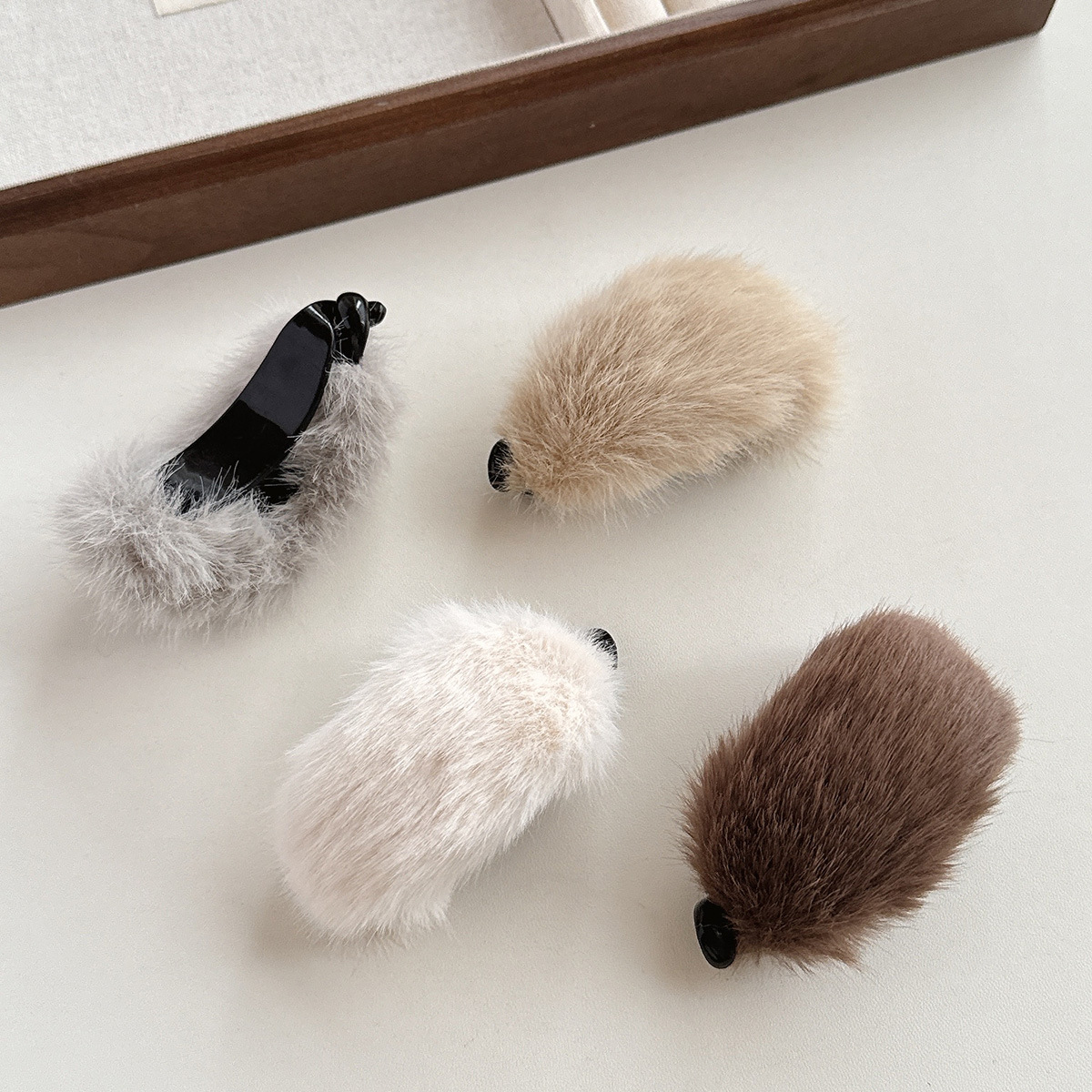 가을과 겨울 봉제 한 단어 트위스트 클립 모방 밍크 헤어 다크 브라운 게으른 헤어 클립 메일러드 한국식 올매치 하이 엔드 센스 헤어 클립스토어 가기