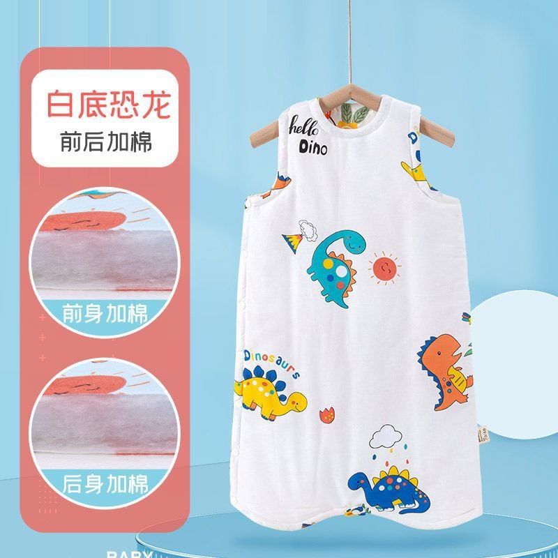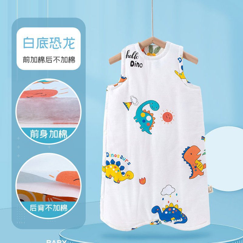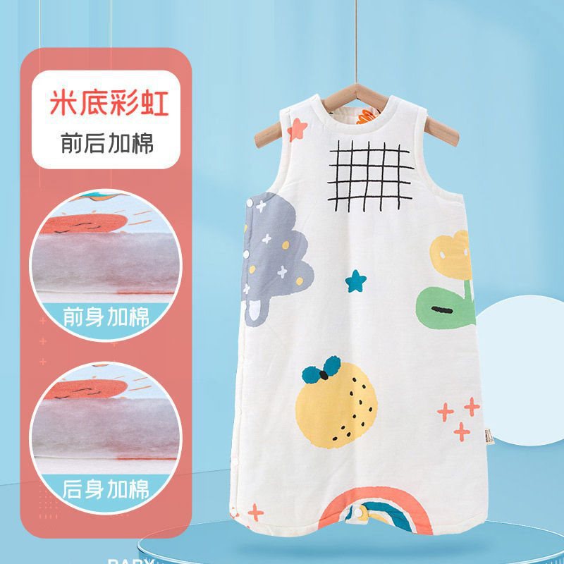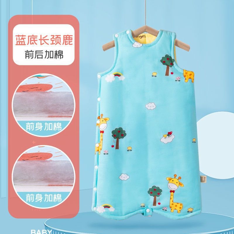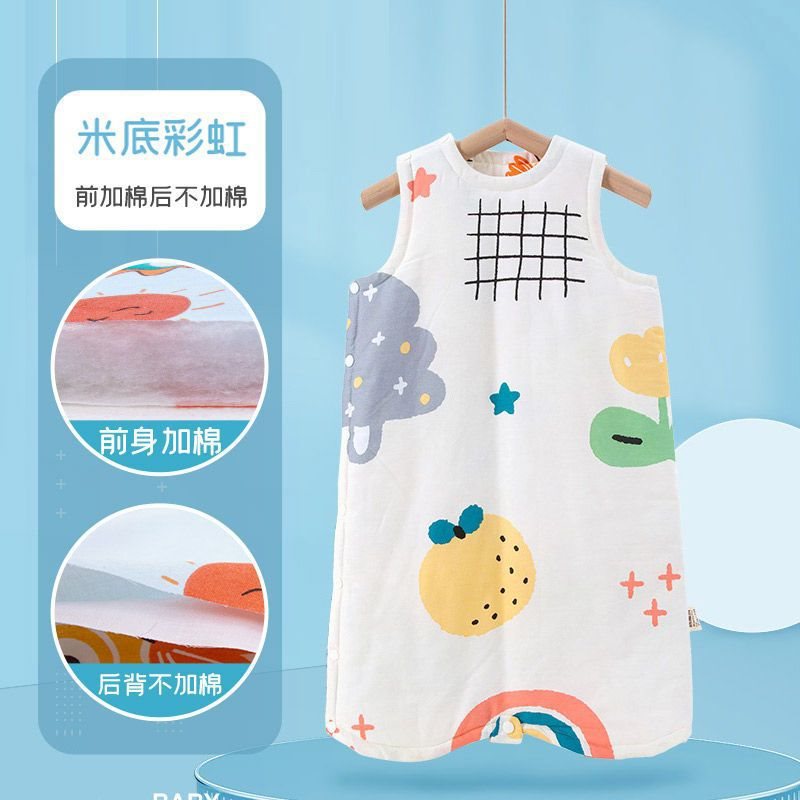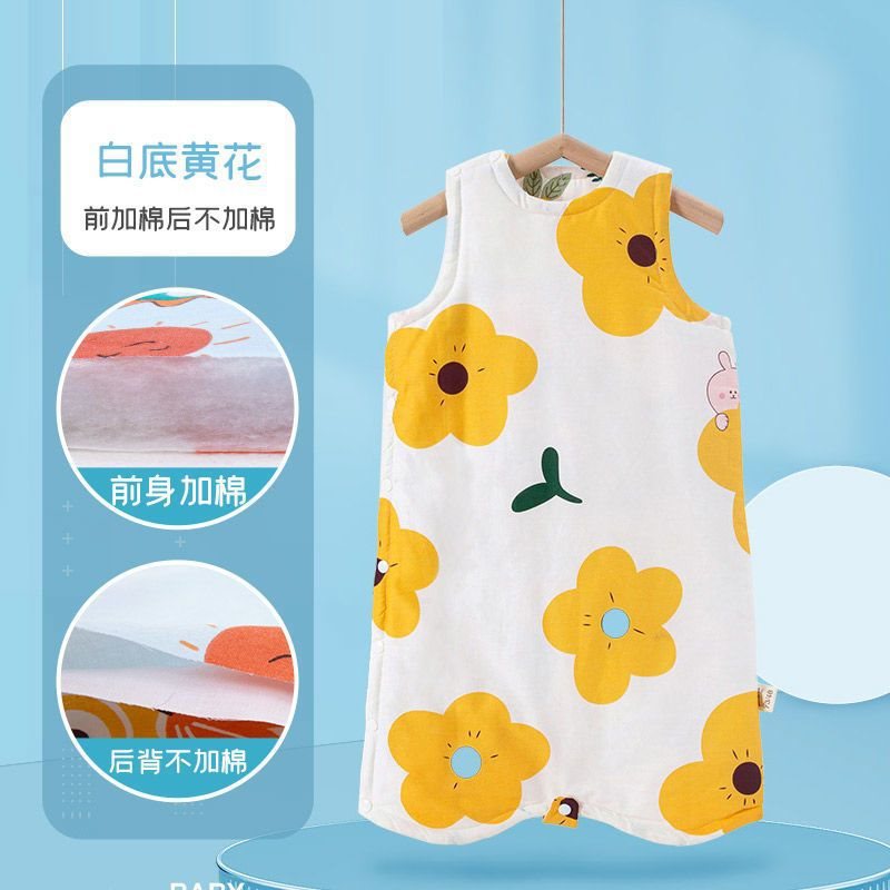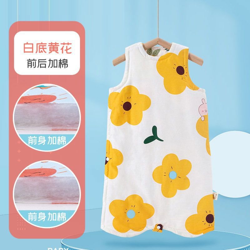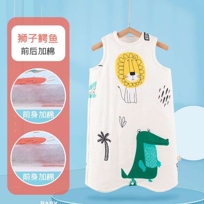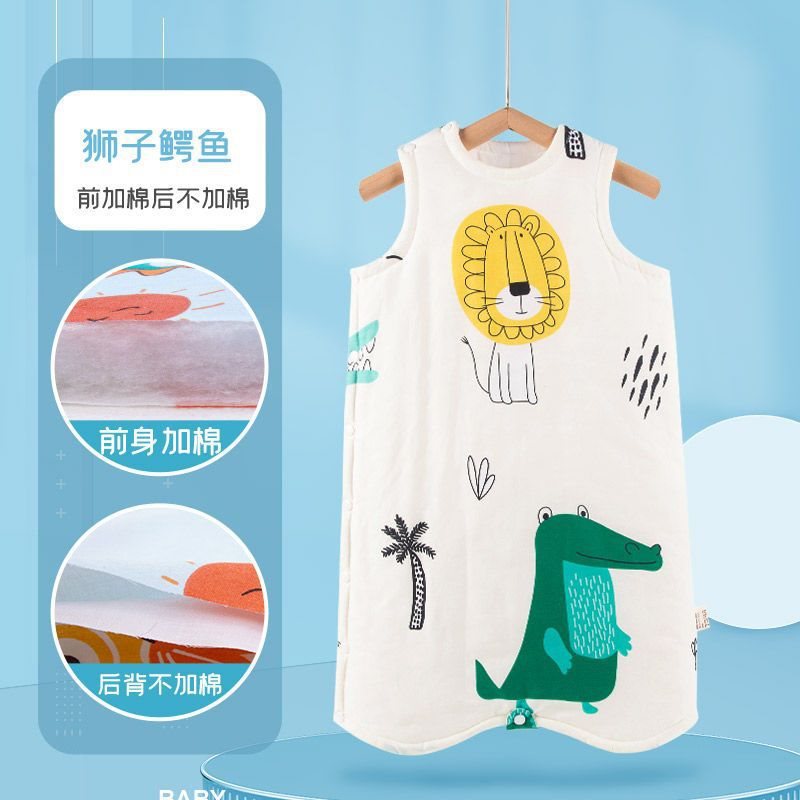 아기 슬리핑 백 가을 겨울 퓨어 코튼 플러스 킥 방지 퀼트 아티팩트 베이비 조끼 스타일 잠옷 중형 및 대형 어린이 면화 패딩 나이트 가운