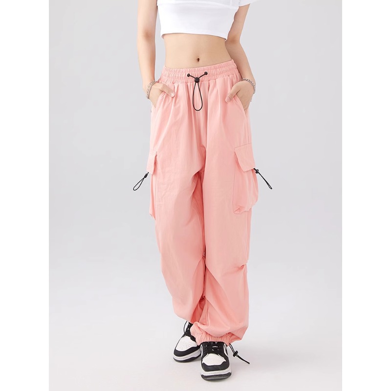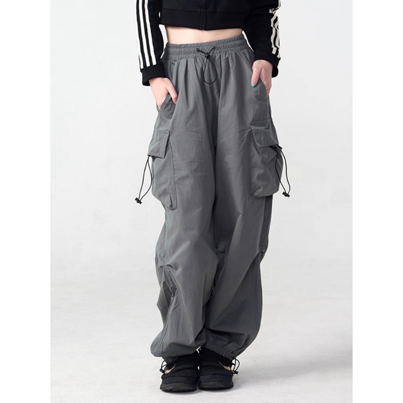 국경 간 미국 복고풍 넓은 다리 낙하산 병 작업복 캐주얼 바지 남성 유행 브랜드 2024 봄과 여름 새로운 느슨한 러쉬 포워드 바지 여성