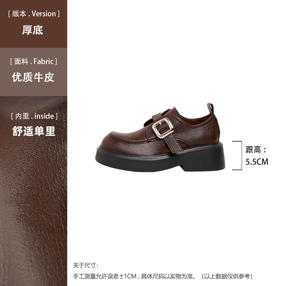 세탁 된 Cowhide 여성의 가을과 겨울 기모 빈티지 슬립 온 두꺼운 밑창 작은 가죽 신발 올 매치 영국 스타일의 두꺼운 힐 로퍼