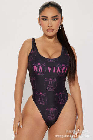 2025 유럽과 미국의 대외 무역 국경 여성 수영복 DA 편지 인쇄 된 보수적 인 백리스 휴가 수영복