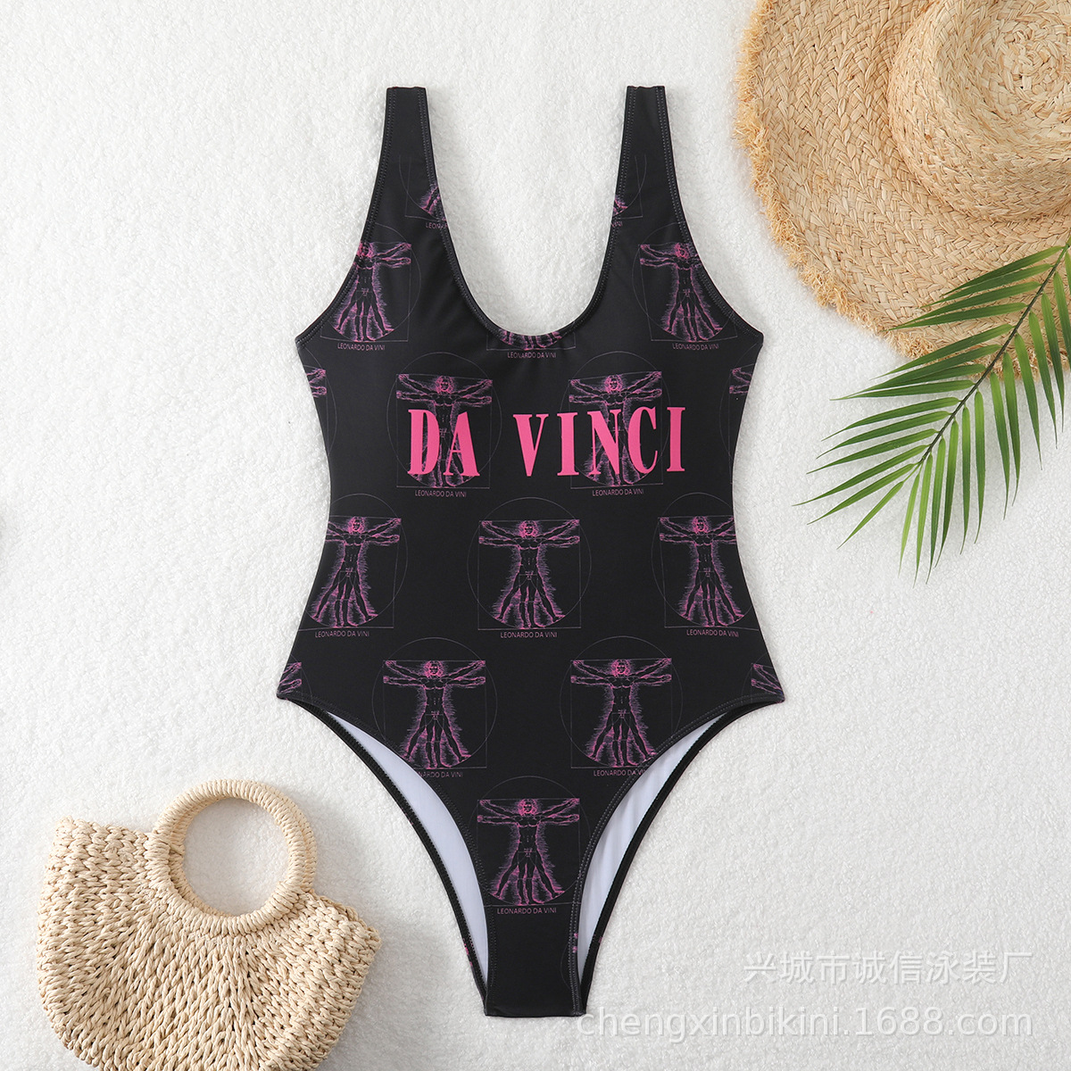2025 유럽과 미국의 대외 무역 국경 여성 수영복 DA 편지 인쇄 된 보수적 인 백리스 휴가 수영복스토어 가기