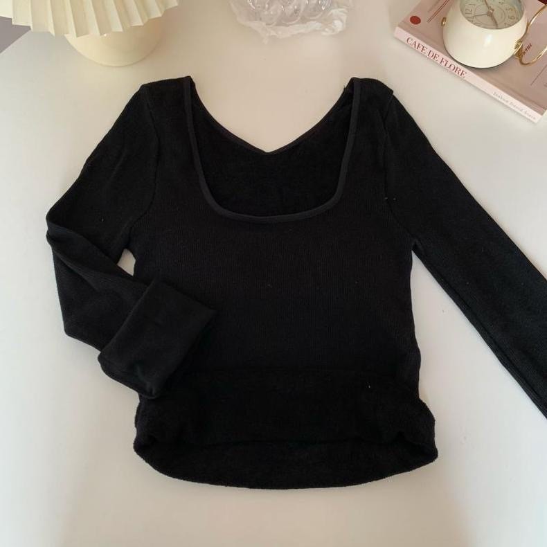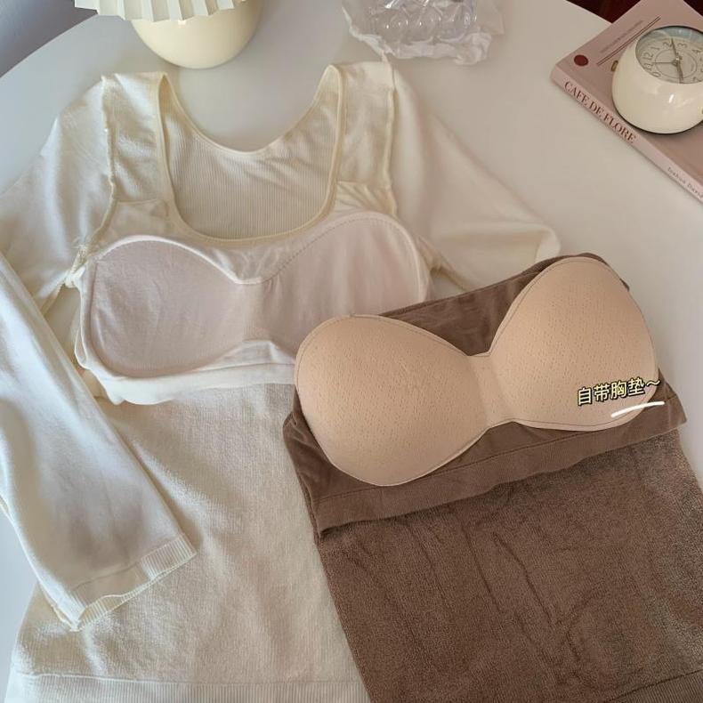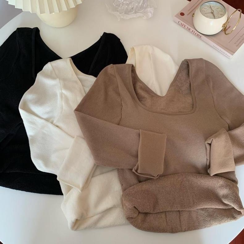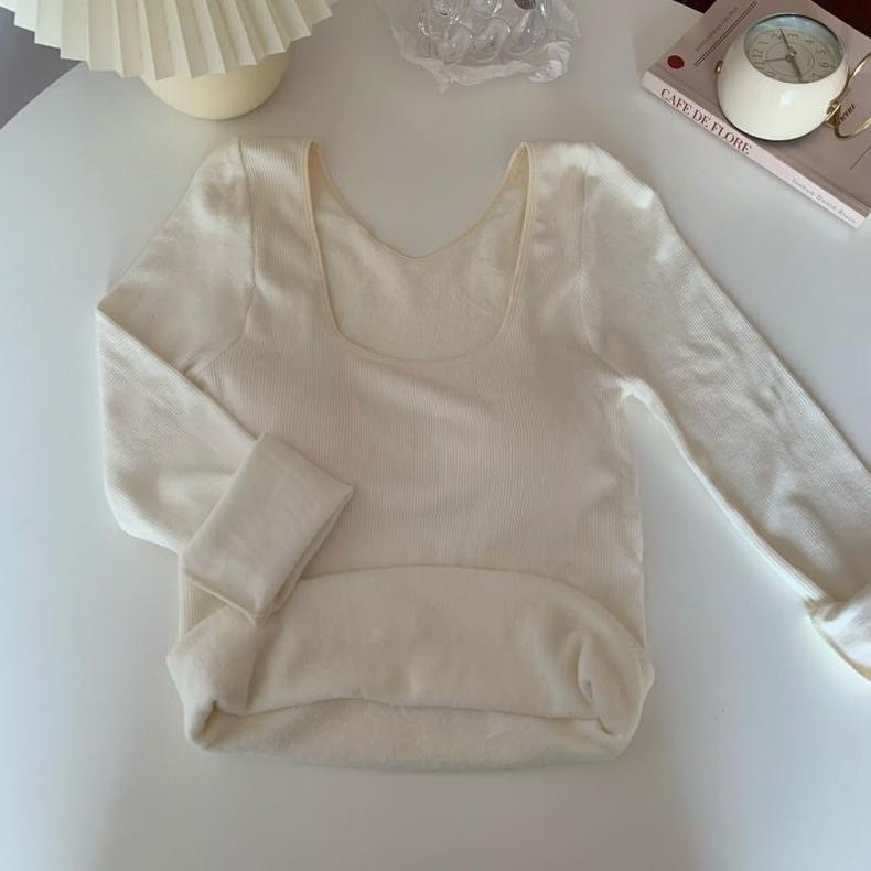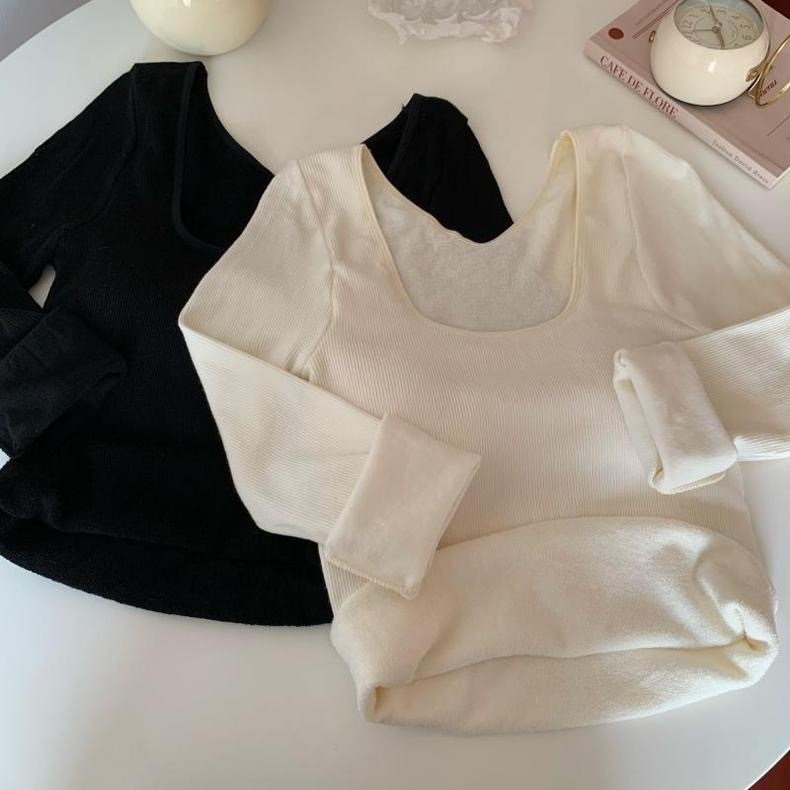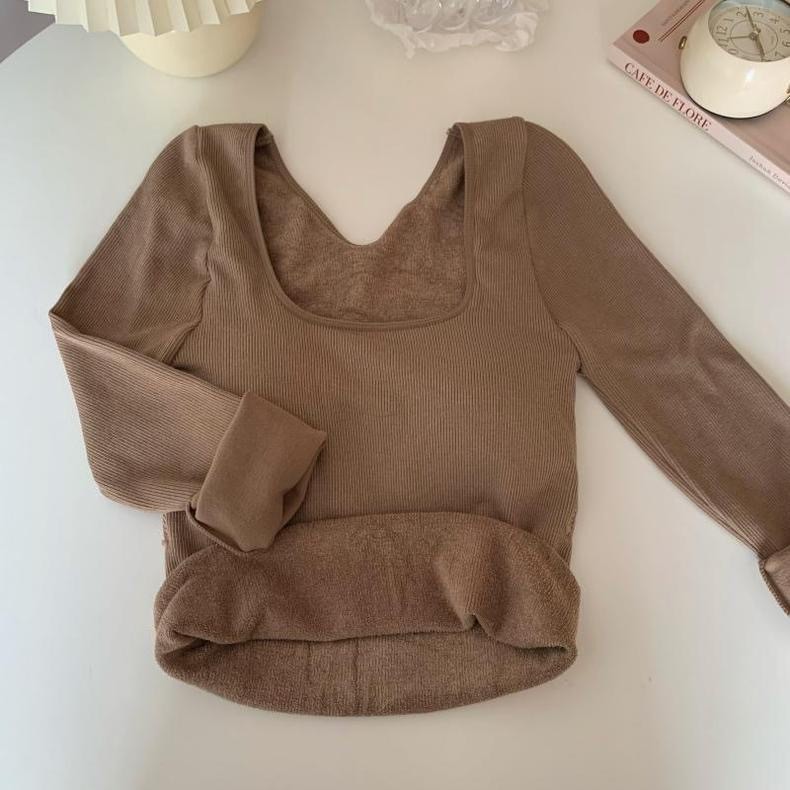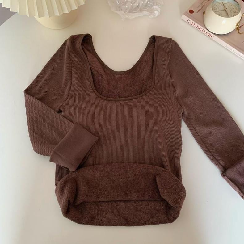 가을과 겨울 기모 테리 높은 탄성 밴드 가슴 패드 열 속옷 기본 셔츠 겉옷 기본 따뜻한 긴 소매 최고 여성스토어 가기