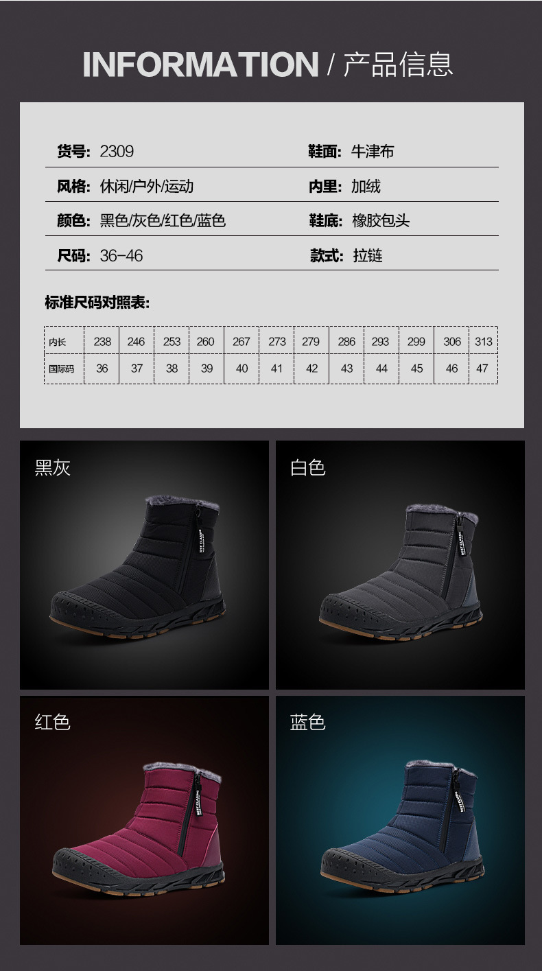 하이 탑 스노우 부츠 새로운 국경 야외 스포츠 레저 하이킹 부츠 미끄럼 방지 기모 따뜻한 방수면 신발
