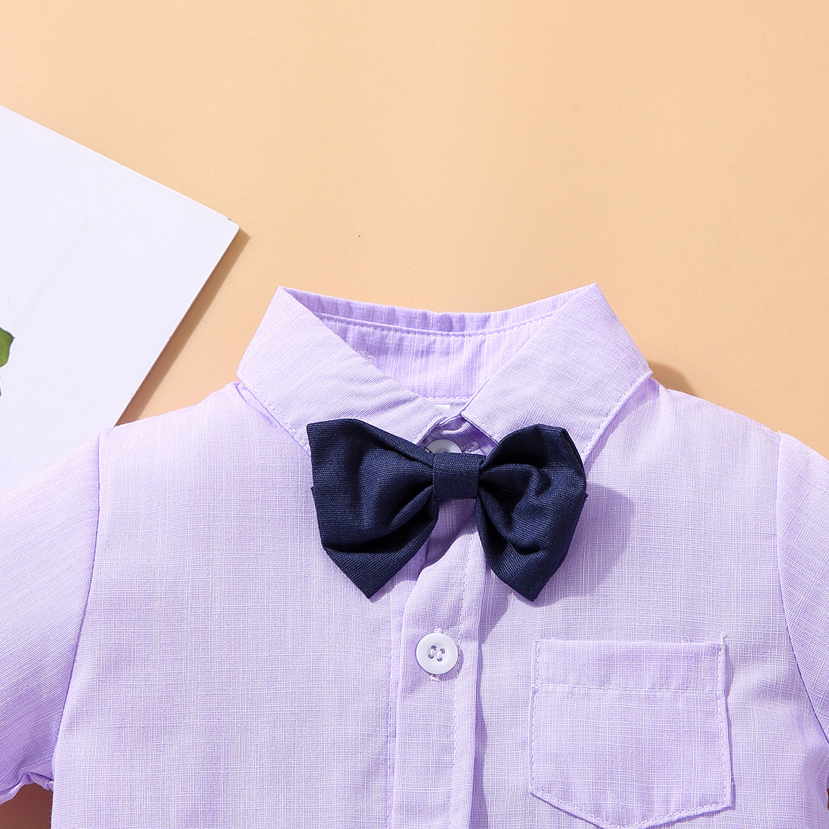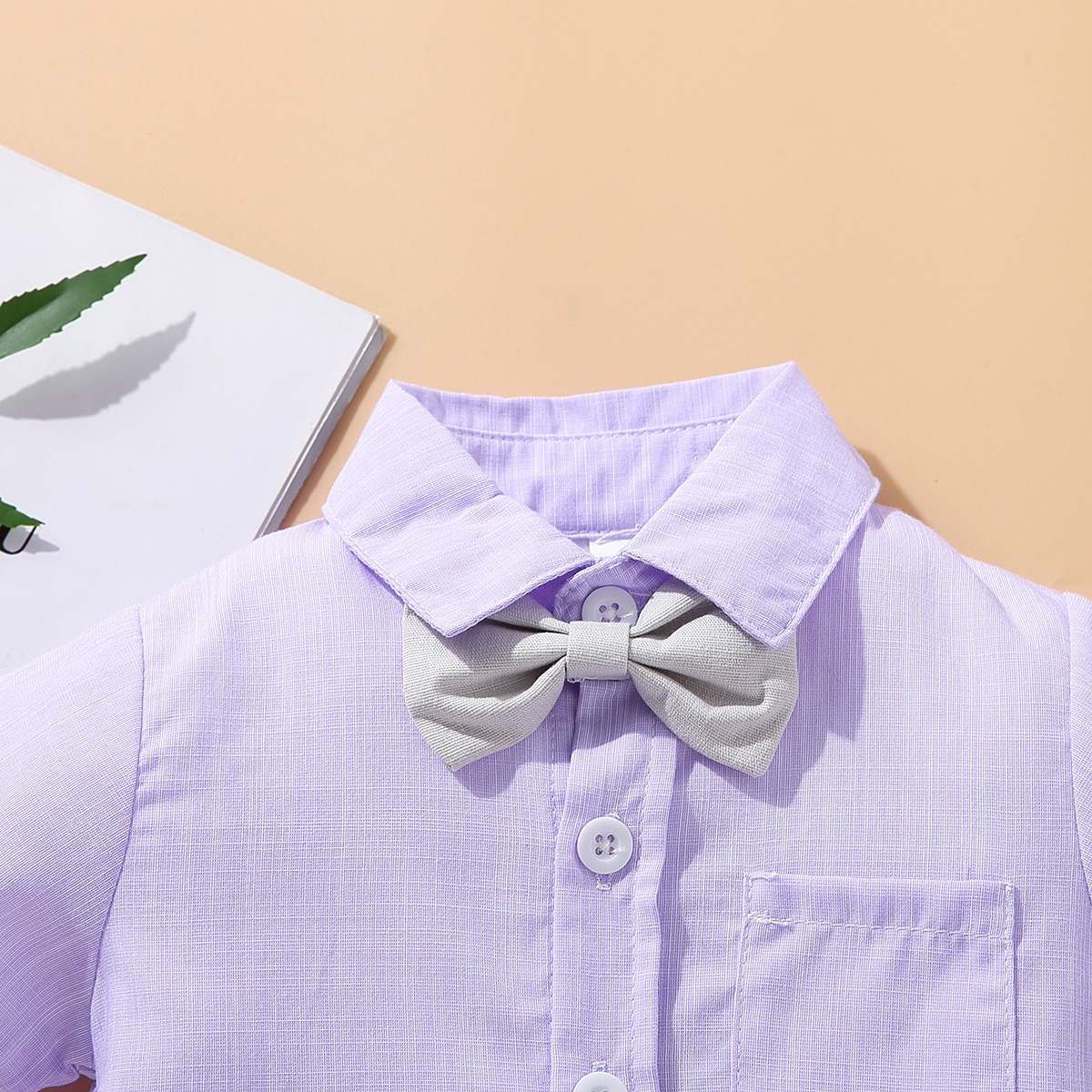 국경 간 영국식 어린이 의류 유아 1 세 원피스 단색 셔츠 스타일 하퍼 스트랩 반바지 소년 세트