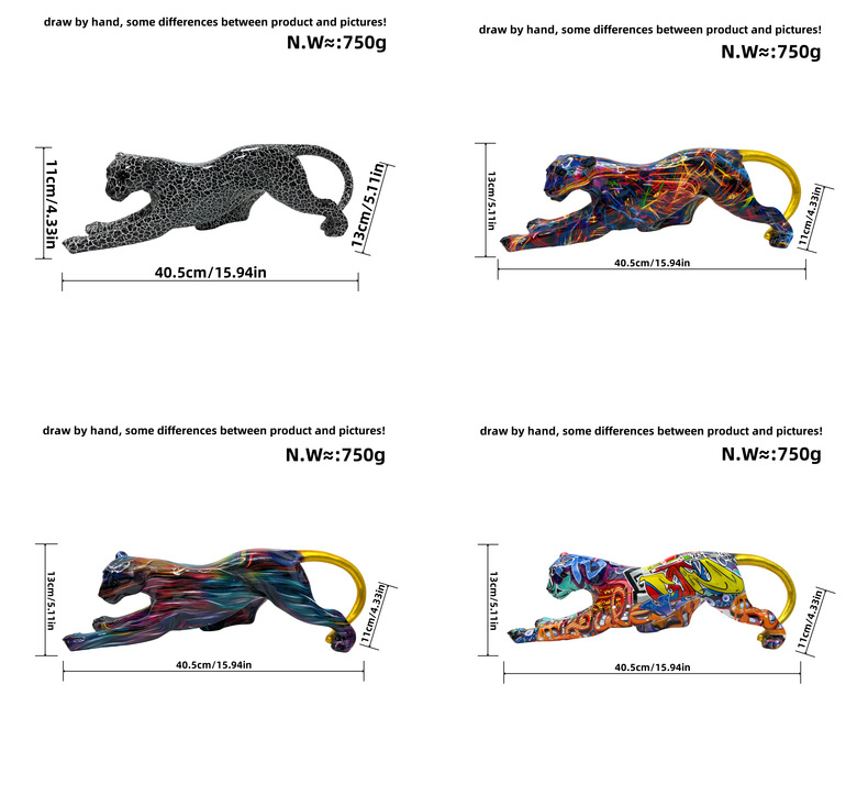 국경 현대 다채로운 전송 레오파드 홈 장식 거실 사무실 데스크탑 장식 수지 공예