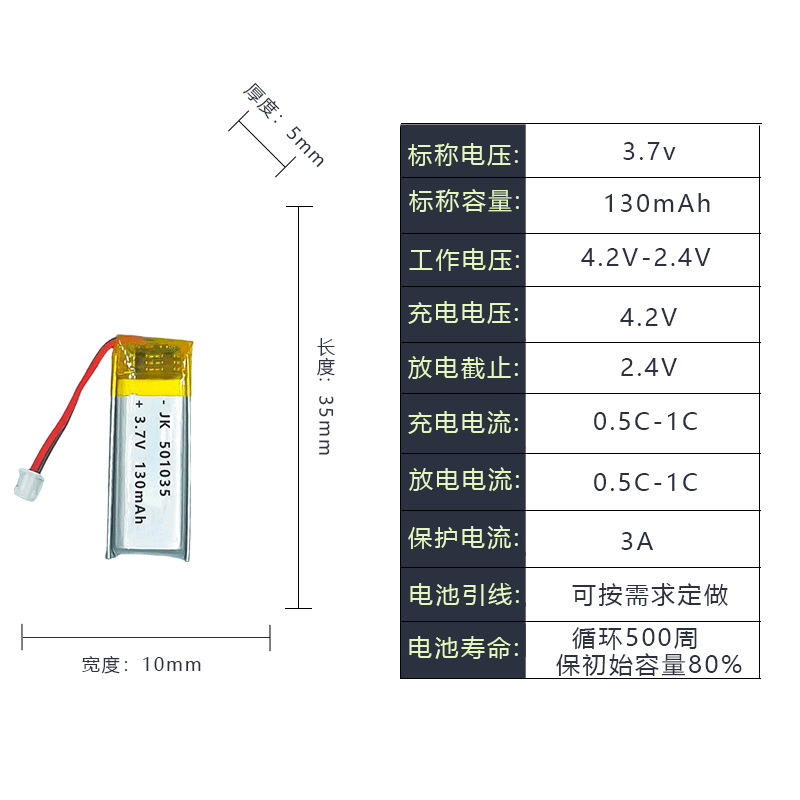 501035 폴리머 리튬 배터리 130mAh 블루투스 넥 헤드셋 뷰티 악기 비주얼 이어 스푼 리튬 배터리