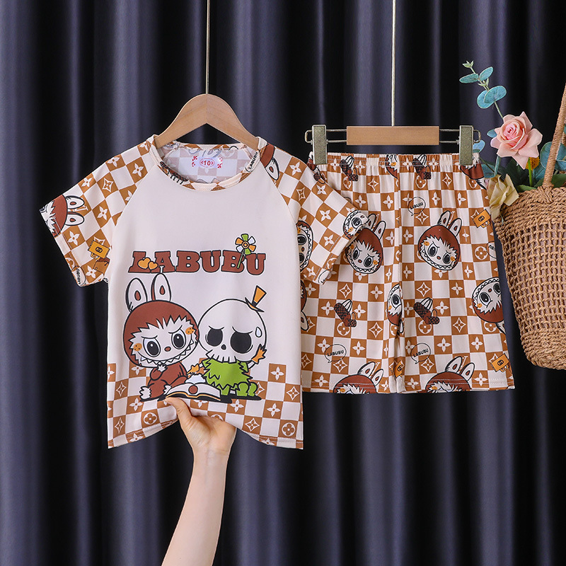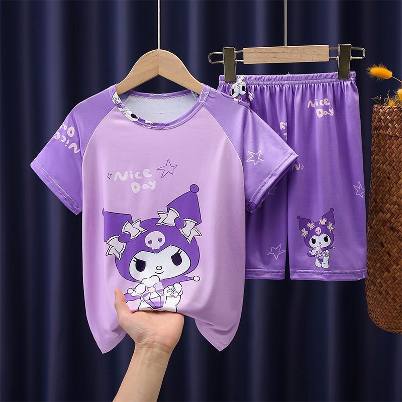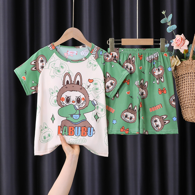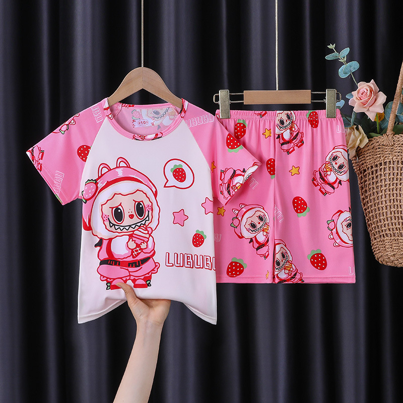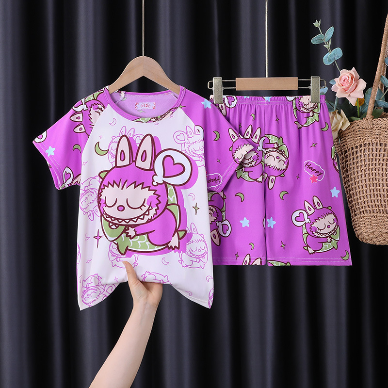 어린이 잠옷 소녀 여름 소년 반팔 반바지 얇은 만화 귀여운 소녀 중 큰 어린이 홈 의류 세트