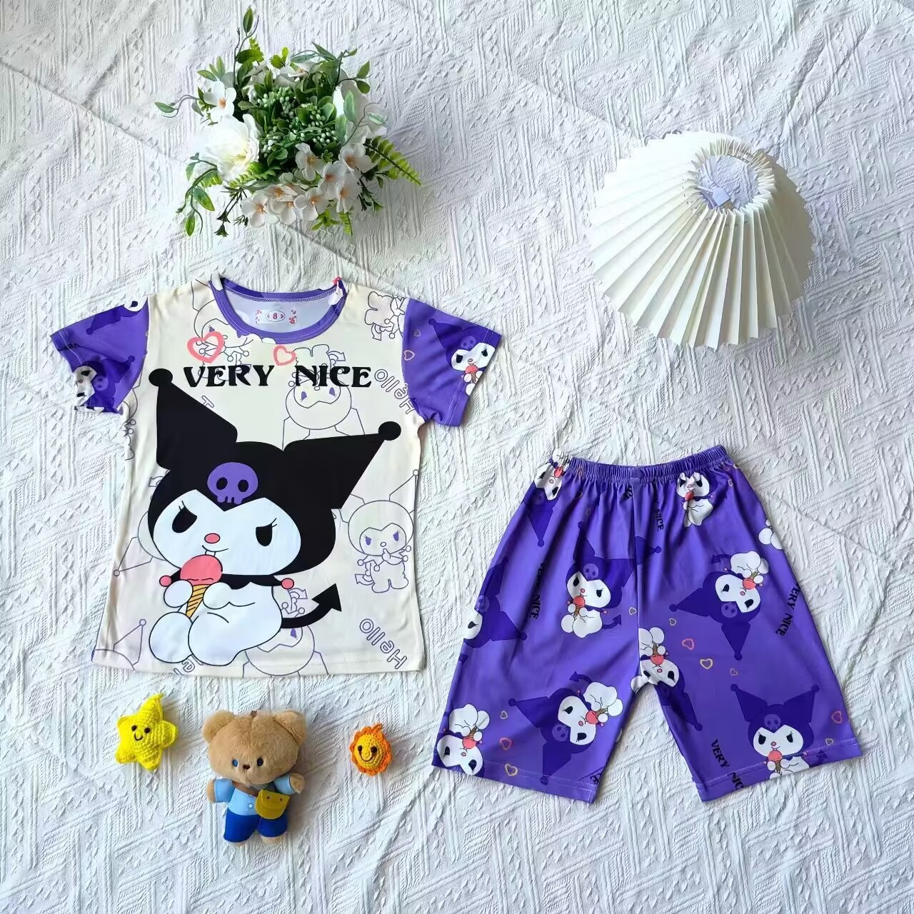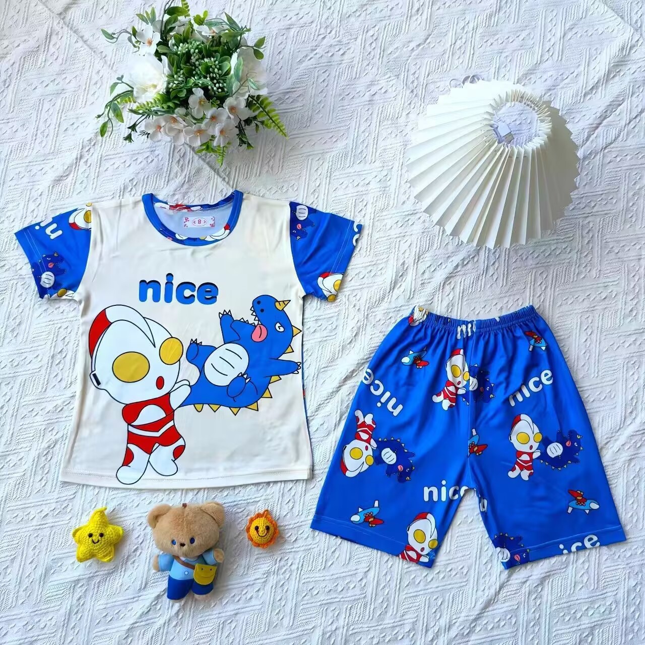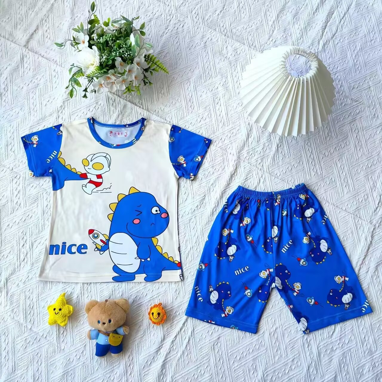 어린이 잠옷 소녀 여름 소년 반팔 반바지 얇은 만화 귀여운 소녀 중 큰 어린이 홈 의류 세트