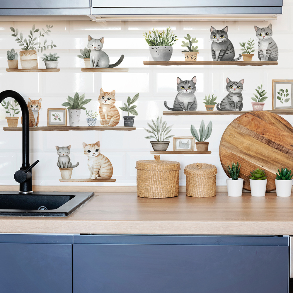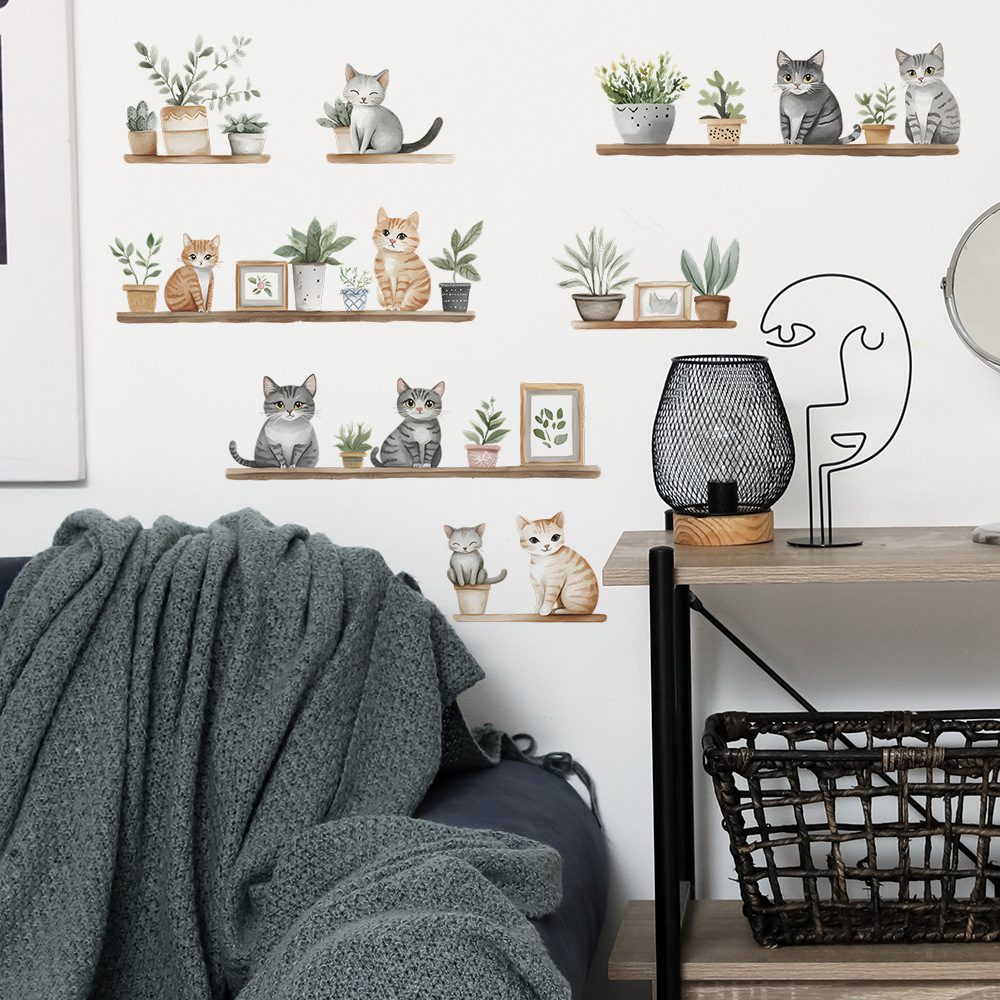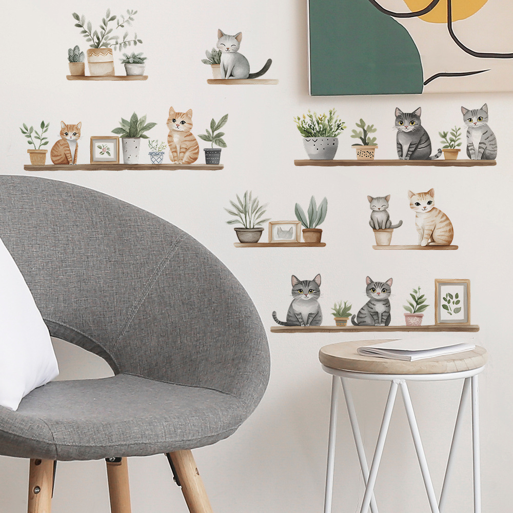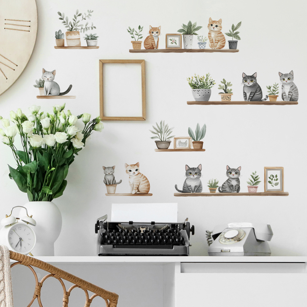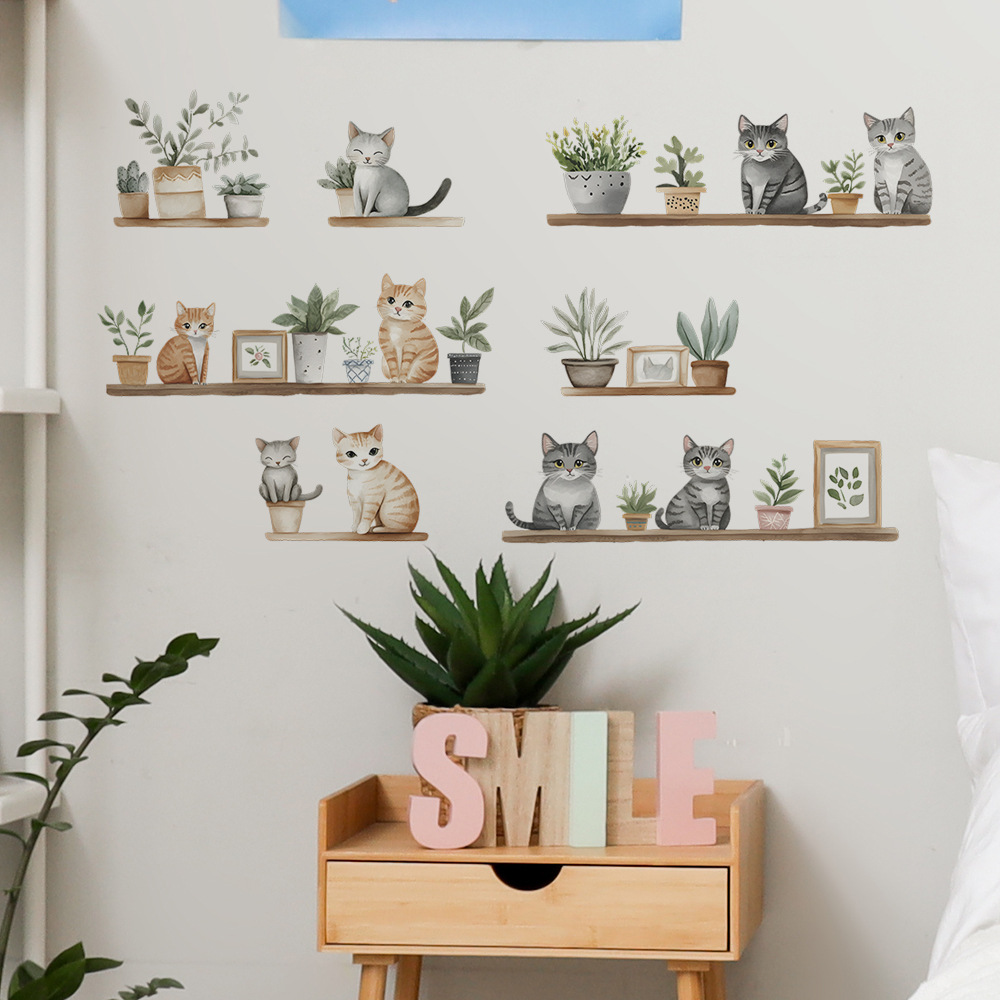 Fun-d31 만화 동물 조합 저장 랙 녹색 식물 냄비 침실 거실 홈 배경 미화 벽 스티커