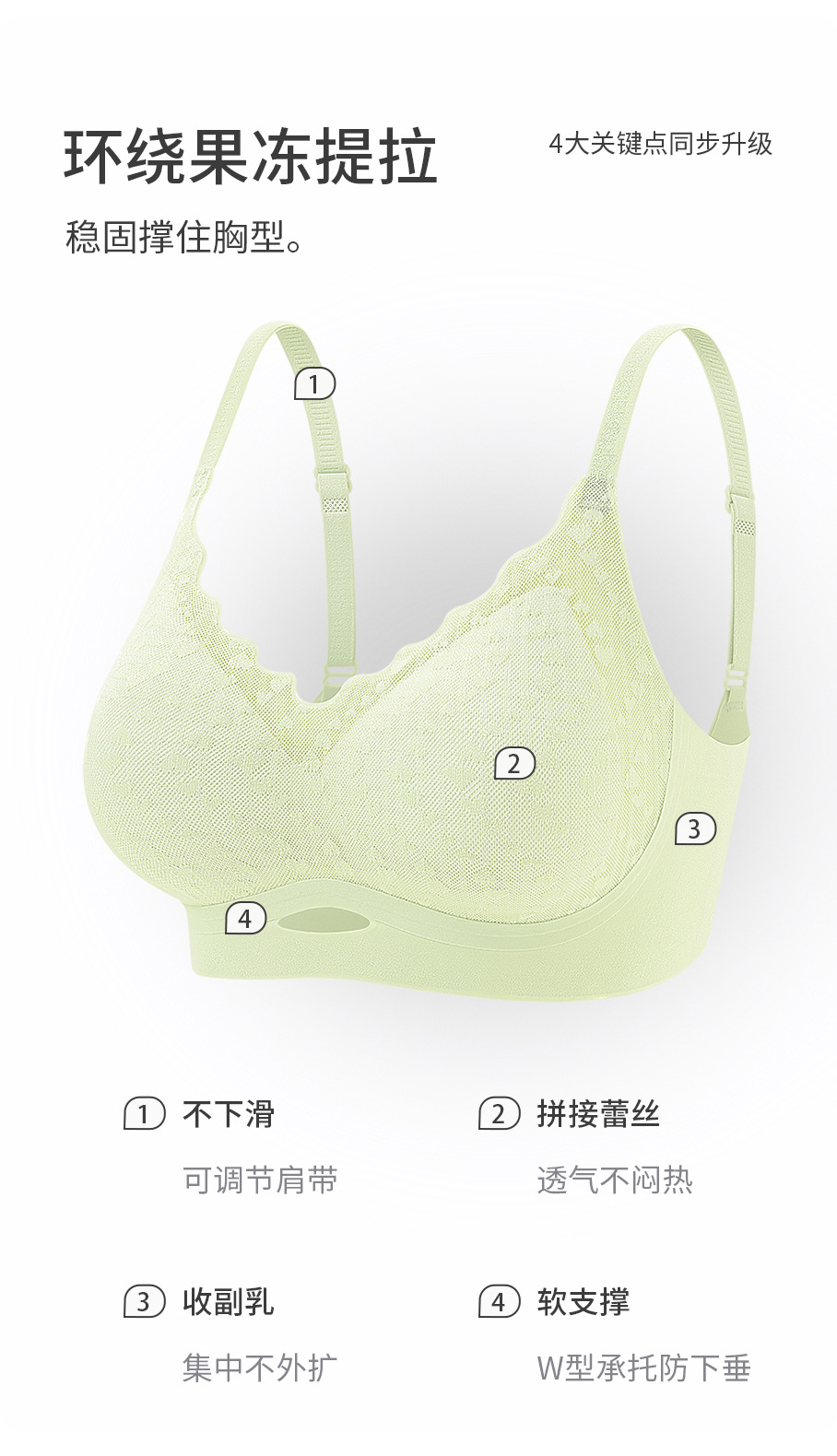 #709 오리지널 프렌치 레이스 라이트급 편안한 이음새없는 벌거 벗은 젤리 스트립 스마트 브레이싱 작은 가슴 조립 속옷