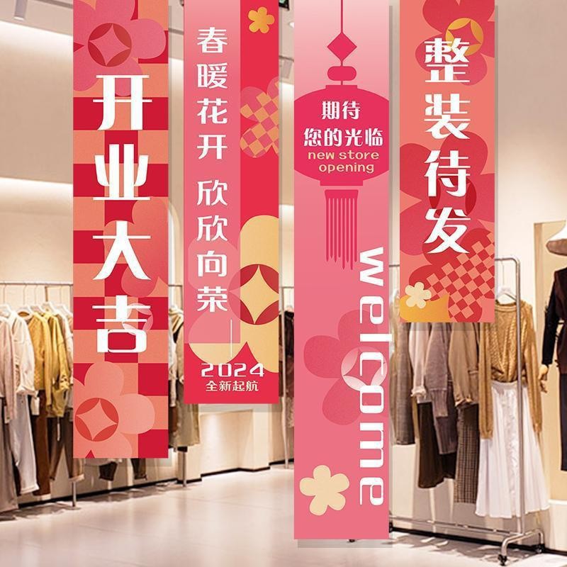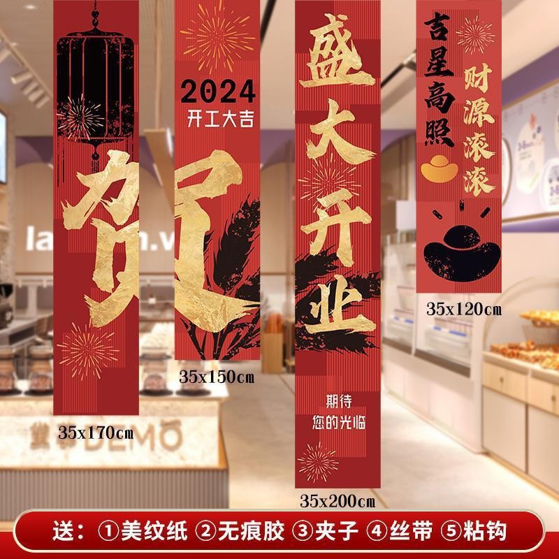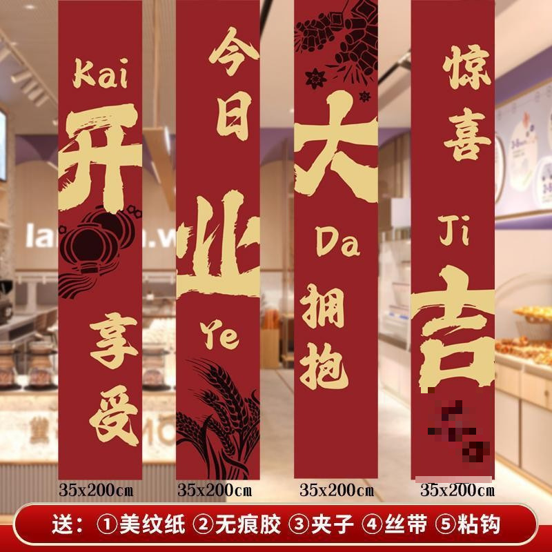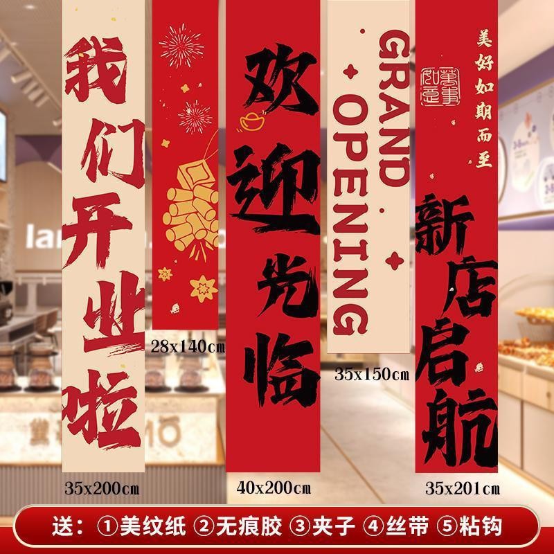 개회식, 개관 분위기, 매달린 천, 배너, 창 장식, 의식 감각, 디스플레이 카드, 축하 매장 국경스토어 가기