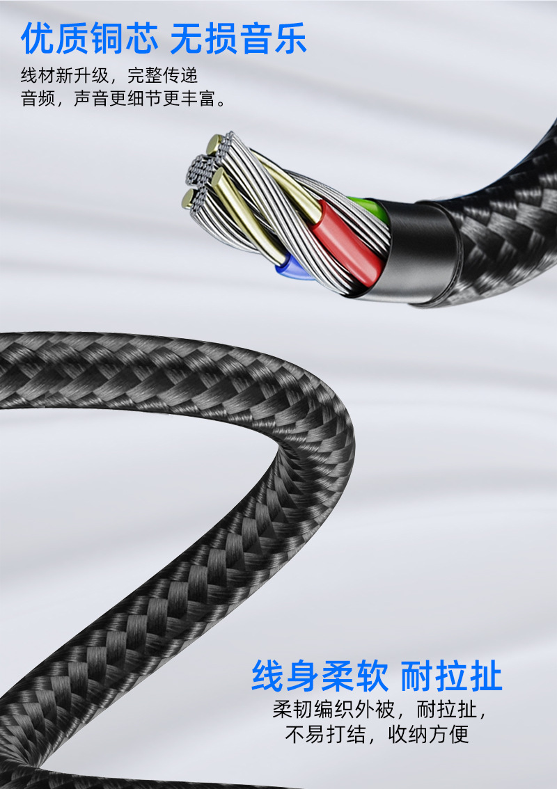 AUX 오디오 케이블 3.5mm 남성-남성 헤드폰 어댑터 케이블 자동차 1-2 연결 오디오 휴대 전화 어댑터