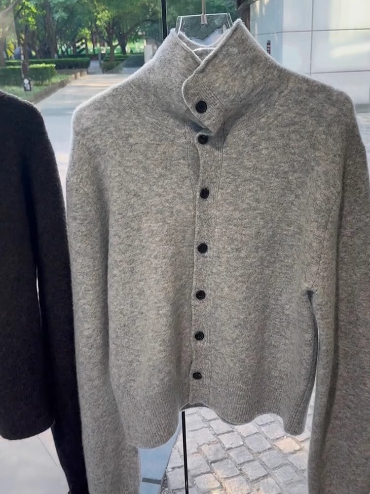 한국 스타일 느슨한 캐주얼 터틀넥 스웨터 카디건 여성의 새로운 블랙 니치 젠틀 에이지 감소 긴팔 스웨터 가을