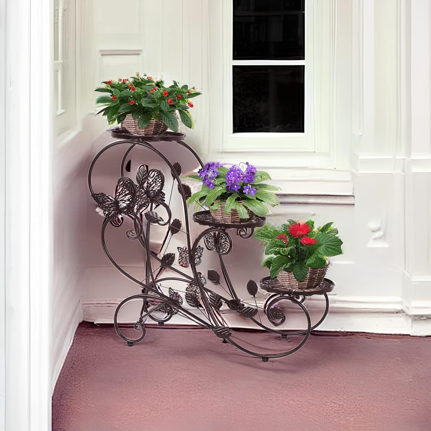 공장 직접 공급 연철 녹색 장미 꽃 스탠드 발코니 거실 다층 꽃 스탠드 유럽 꽃 스탠드 실내 꽃 스탠드