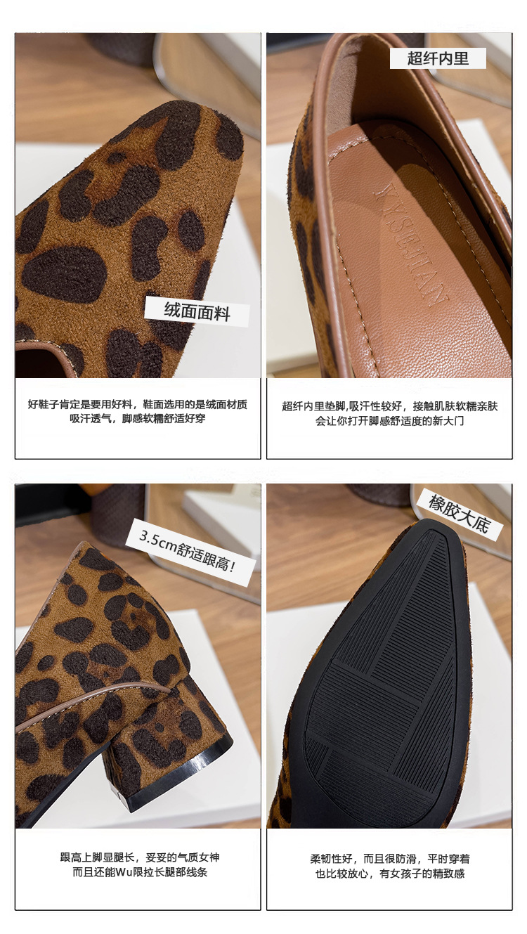 7cm 하이힐을 가리키는 레오파드 무늬 내높이 증가 싱글 신발 가을과 겨울 스웨이드 프렌치 통근 플랫 싱글 신발스토어 가기