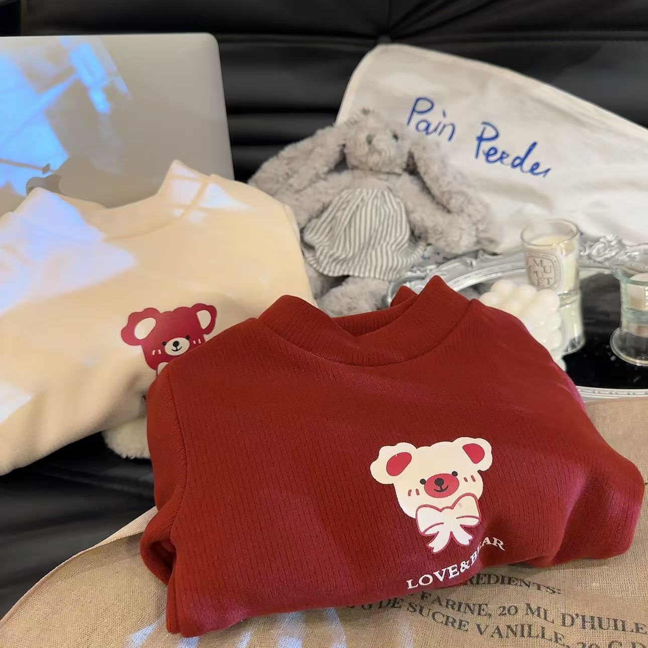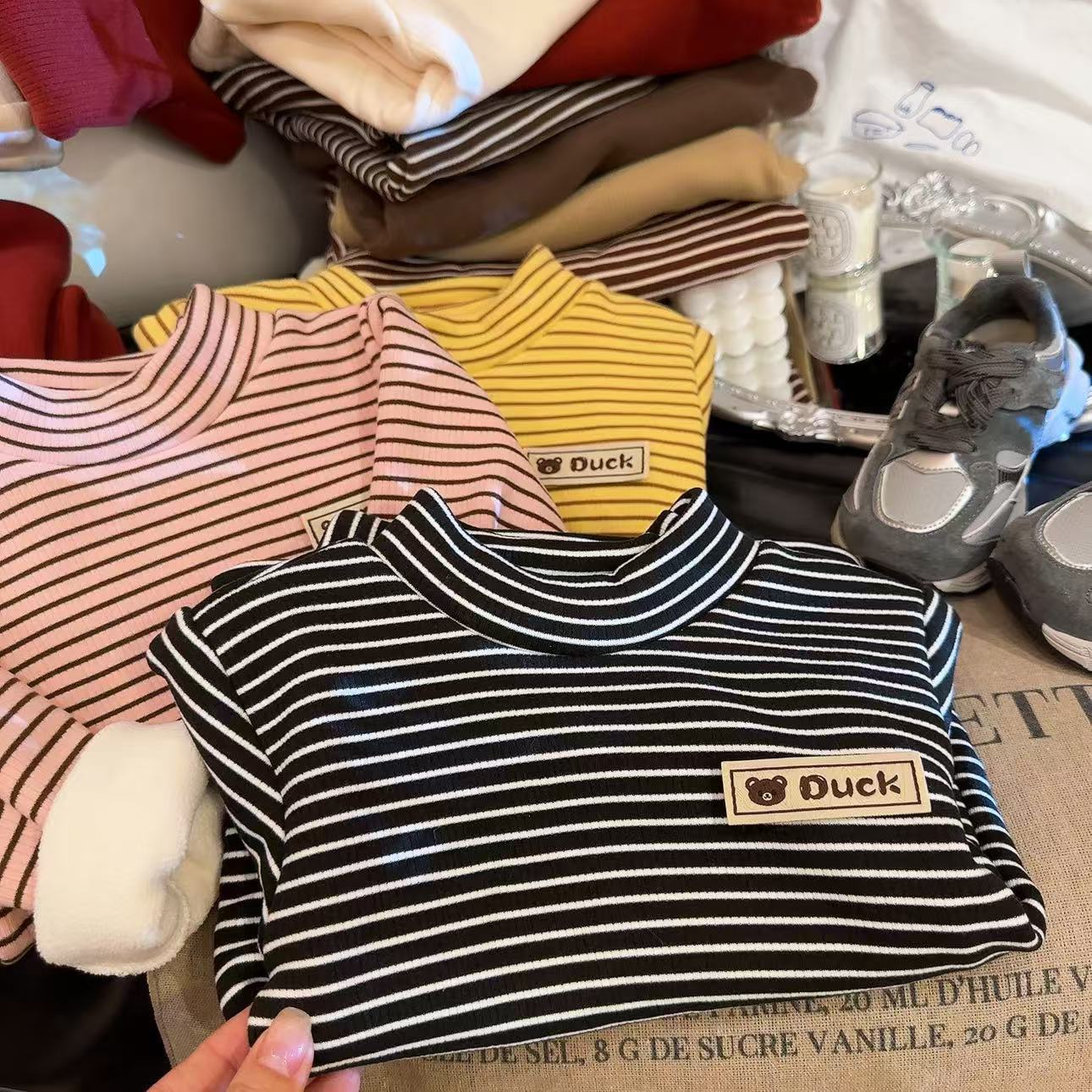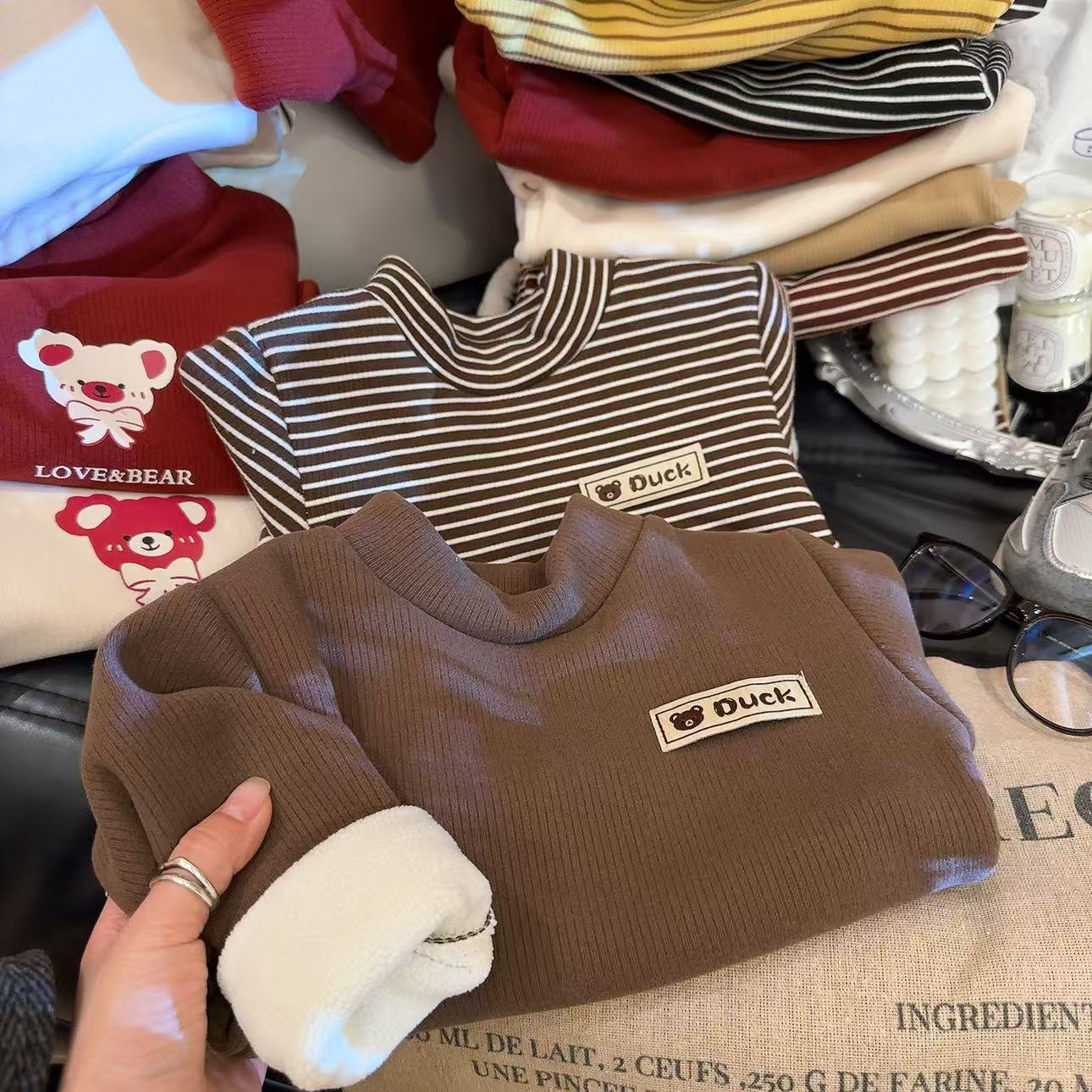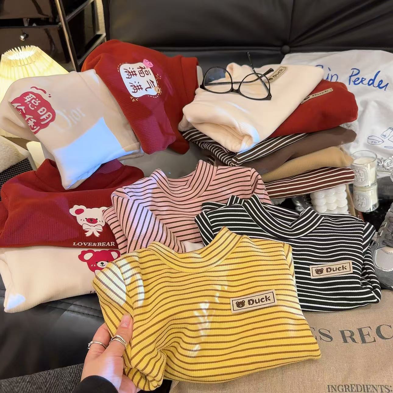 가을과 겨울 새로운 기모 두꺼운 기본 셔츠 소년 소녀 반 높은 칼라 조커 기모 따뜻한 스웨터 아동복 도매스토어 가기