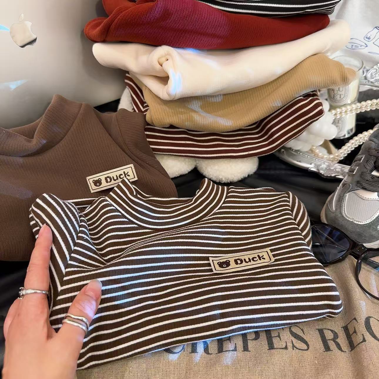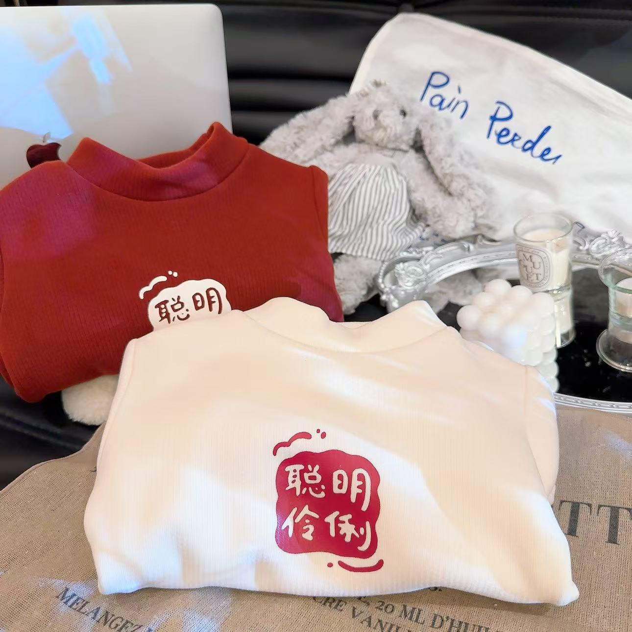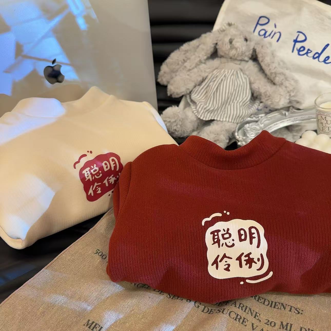 가을과 겨울 새로운 기모 두꺼운 기본 셔츠 소년 소녀 반 높은 칼라 조커 기모 따뜻한 스웨터 아동복 도매
