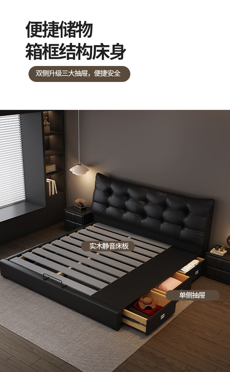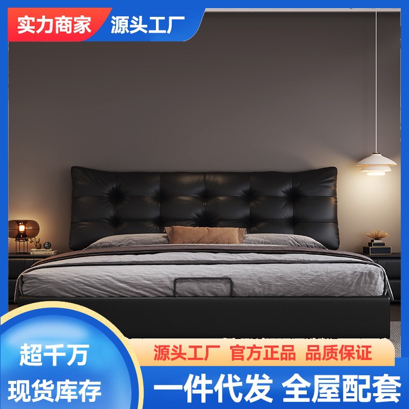 이탈리안 스타일의 매우 심플하고 모던한 가죽 침대 1.5m 싱글 침실 마스터 침실 1.8m 더블 웨딩 침대 침실스토어 가기