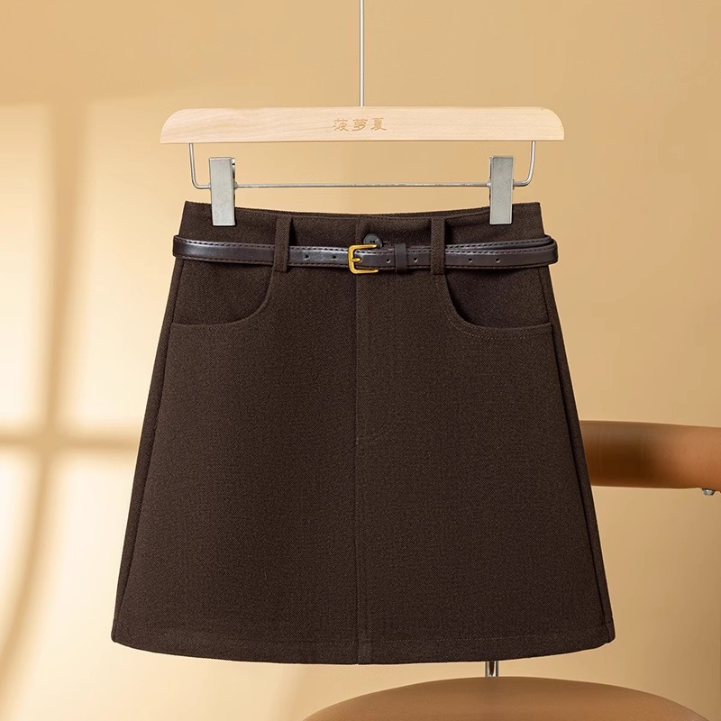 모직 스커트 여성의 가을과 겨울 2024 새로운 높은 허리 슬리밍 빈티지 올 매치 스커트 숄더 백 힙합 스커트스토어 가기