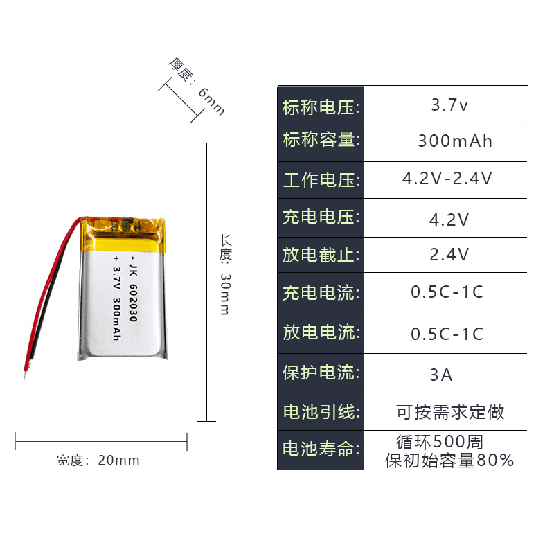 폴리머 리튬 배터리 602 030 300mAh 3.7V 뷰티 헤드셋 LED 램프 조명 전자 책 제조 업체스토어 가기