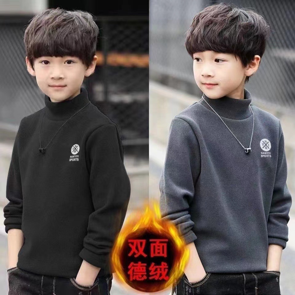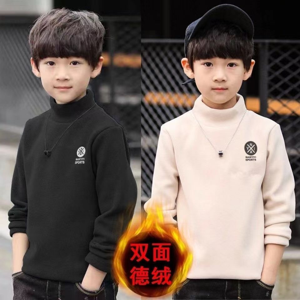 남학생 '반높이 칼라 기모 거점 셔츠 가을 · 겨울 어린이 긴팔 티셔츠 대형 어린이 양면 벨벳 웜탑