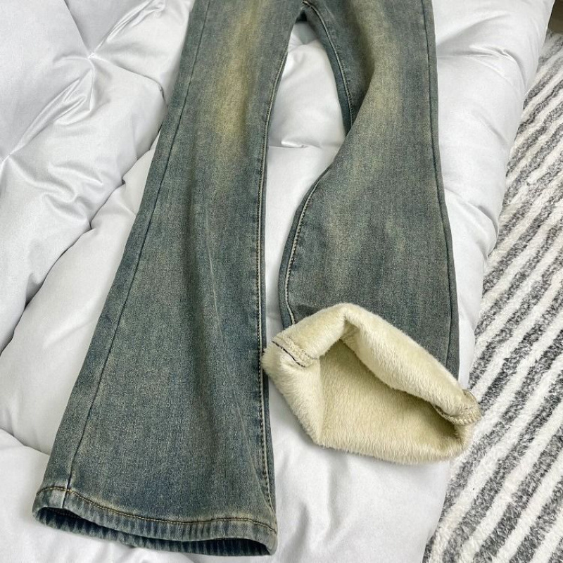 기모 두꺼운 레트로 스트레이트 청바지 여성의 겨울 새로운 높은 허리 슬리밍 스트레치 커버 바지스토어 가기