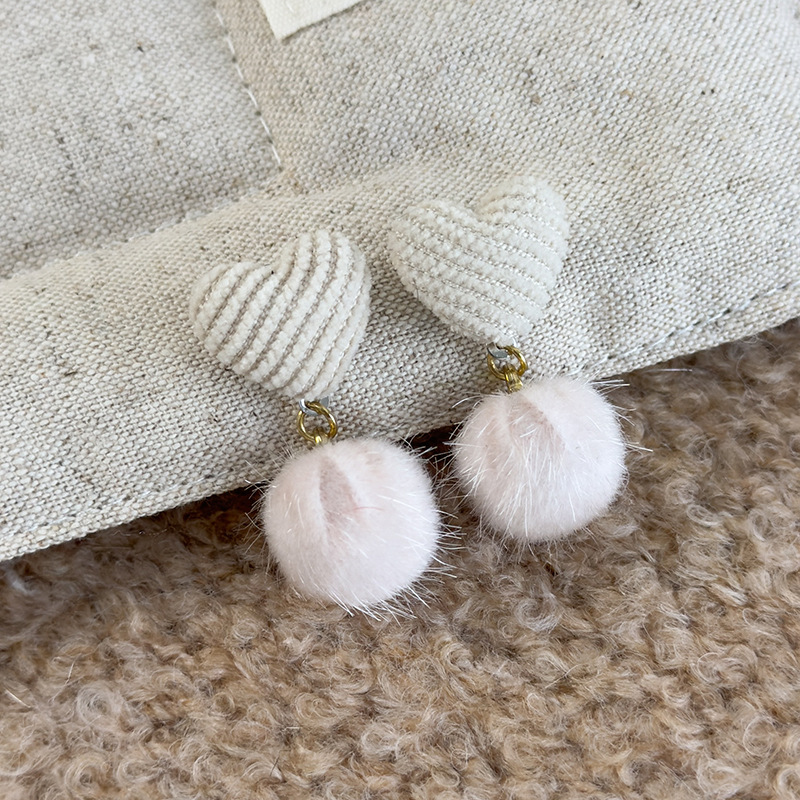겨울 사랑 모피 귀걸이 가을과 겨울 높은 감각 달콤한 기질 귀걸이 틈새 독특한 봉제 귀걸이