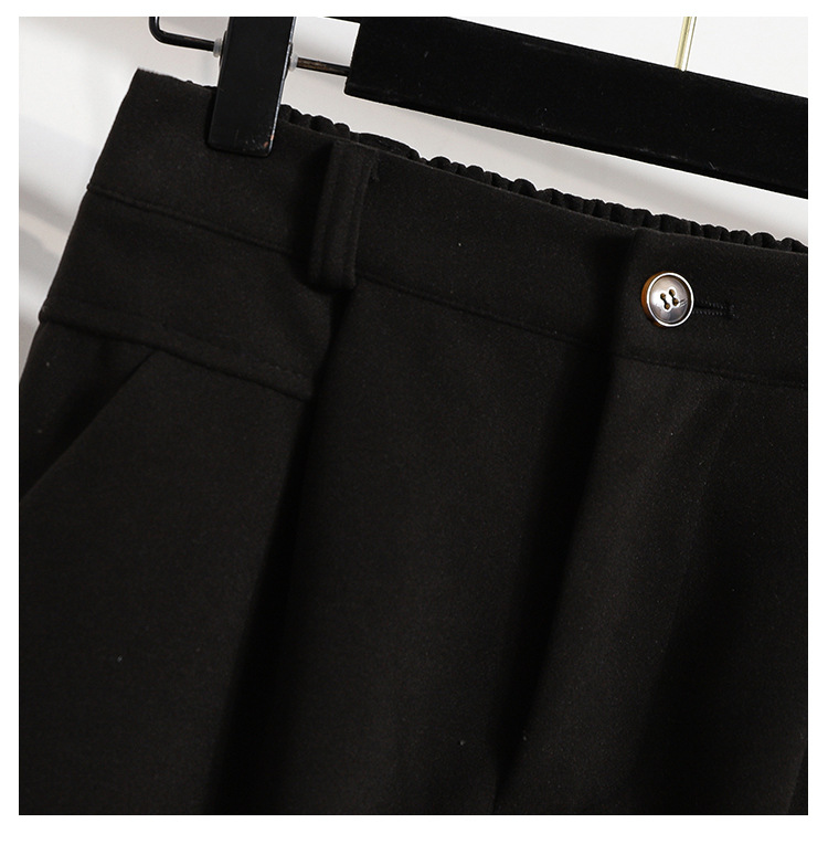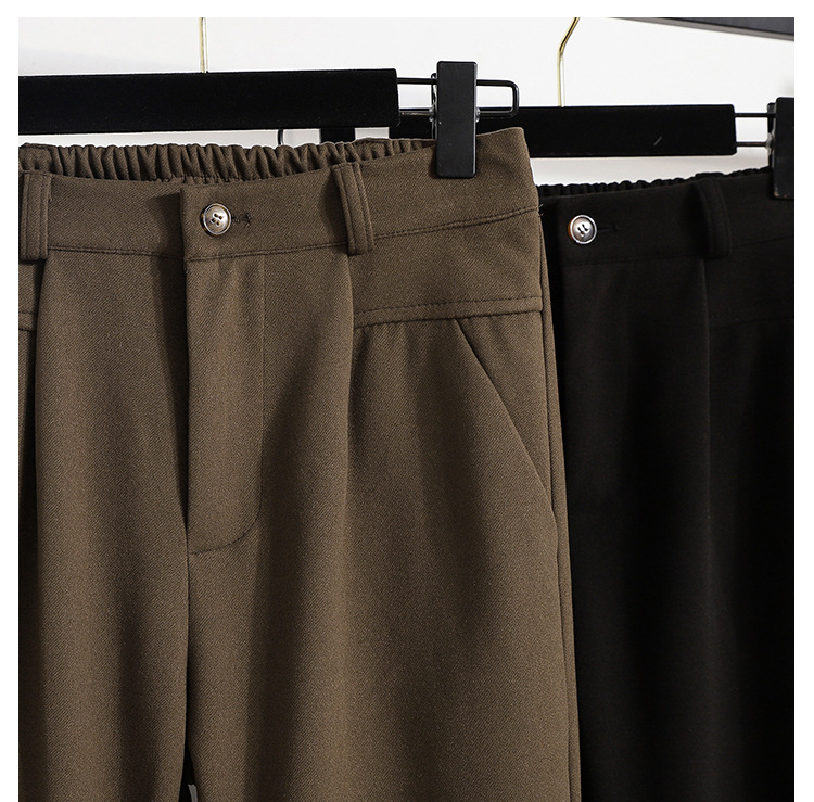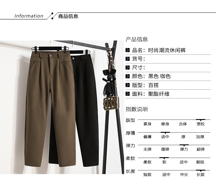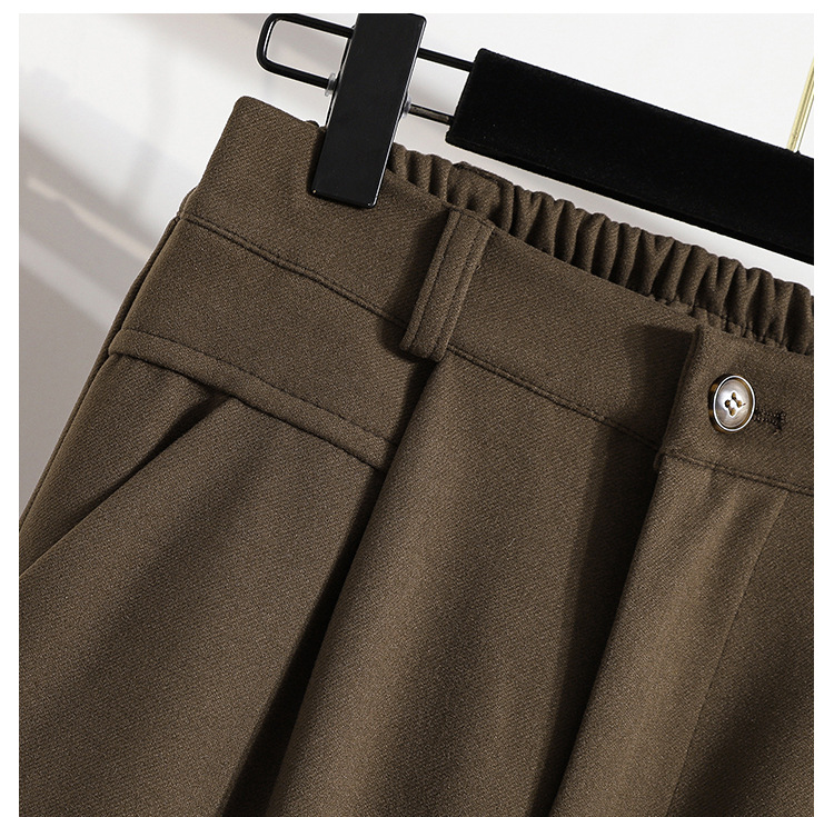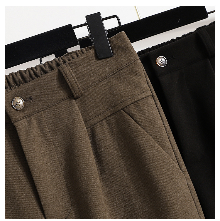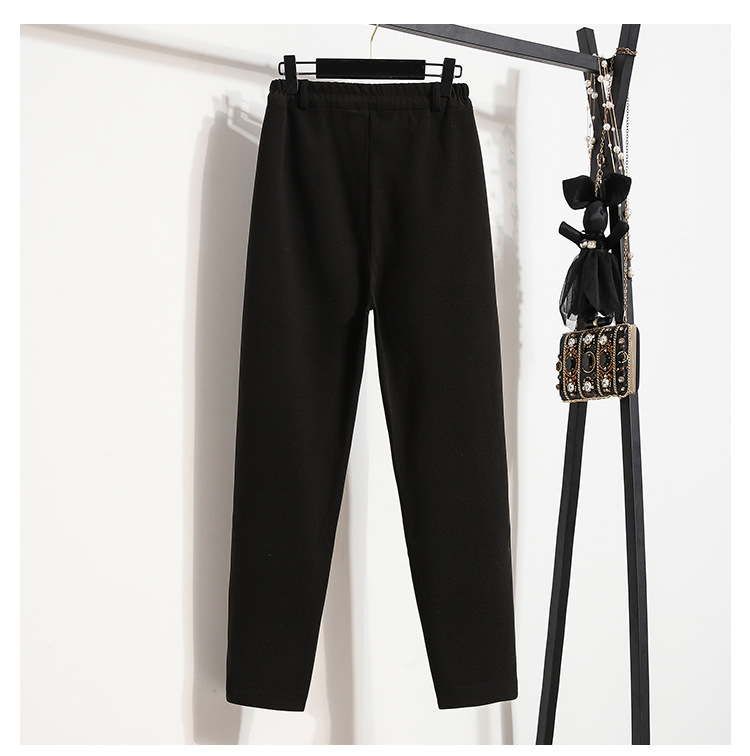 진짜 샷 재고 따뜻한 모직 탄성 허리 플러스 사이즈 하렘 바지 2024 겨울 새로운 통통녀 슬림 캐주얼 바지