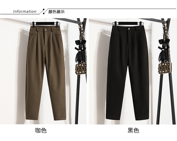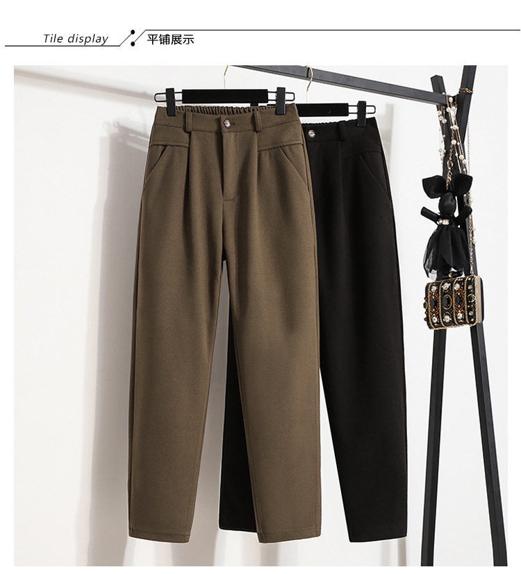 진짜 샷 재고 따뜻한 모직 탄성 허리 플러스 사이즈 하렘 바지 2024 겨울 새로운 통통녀 슬림 캐주얼 바지스토어 가기