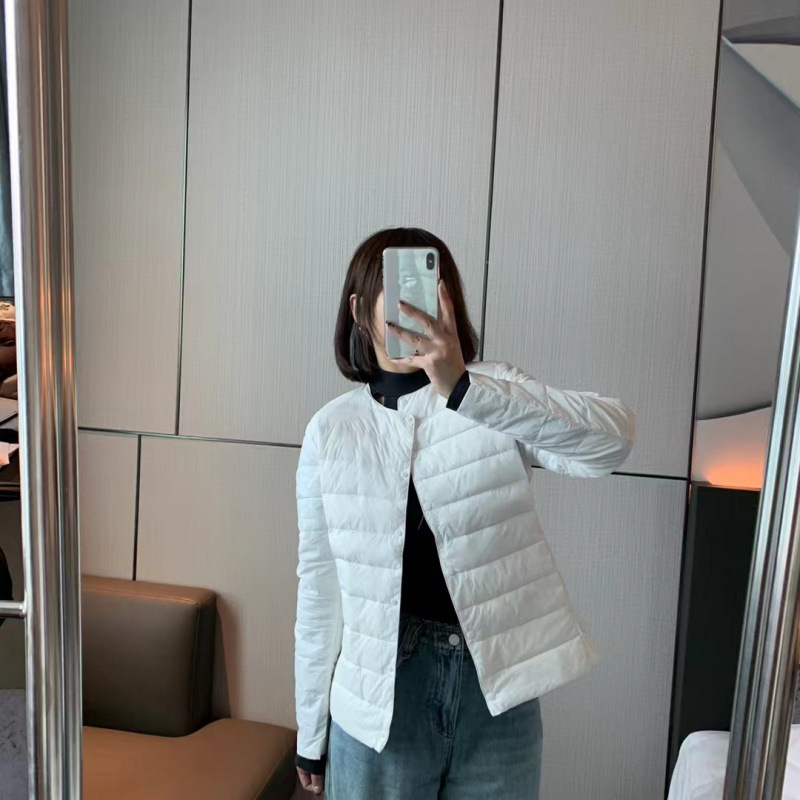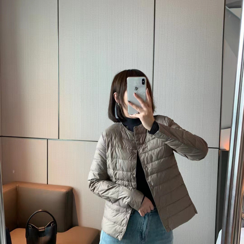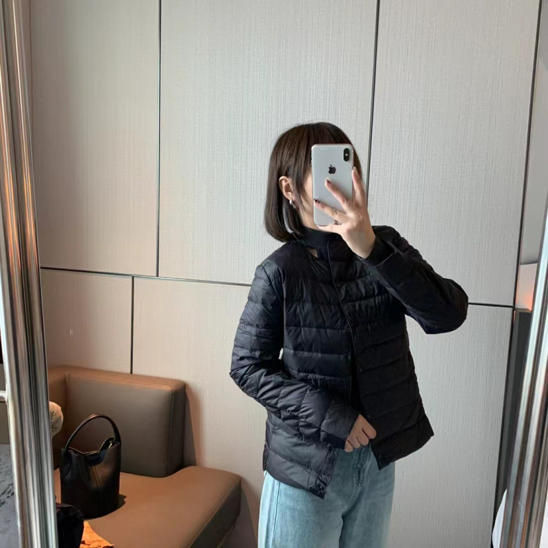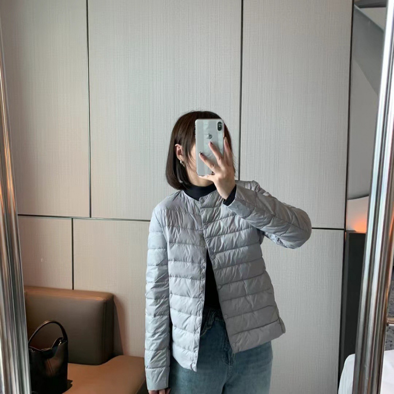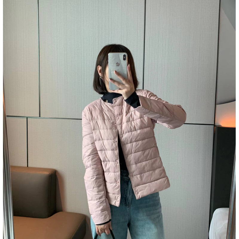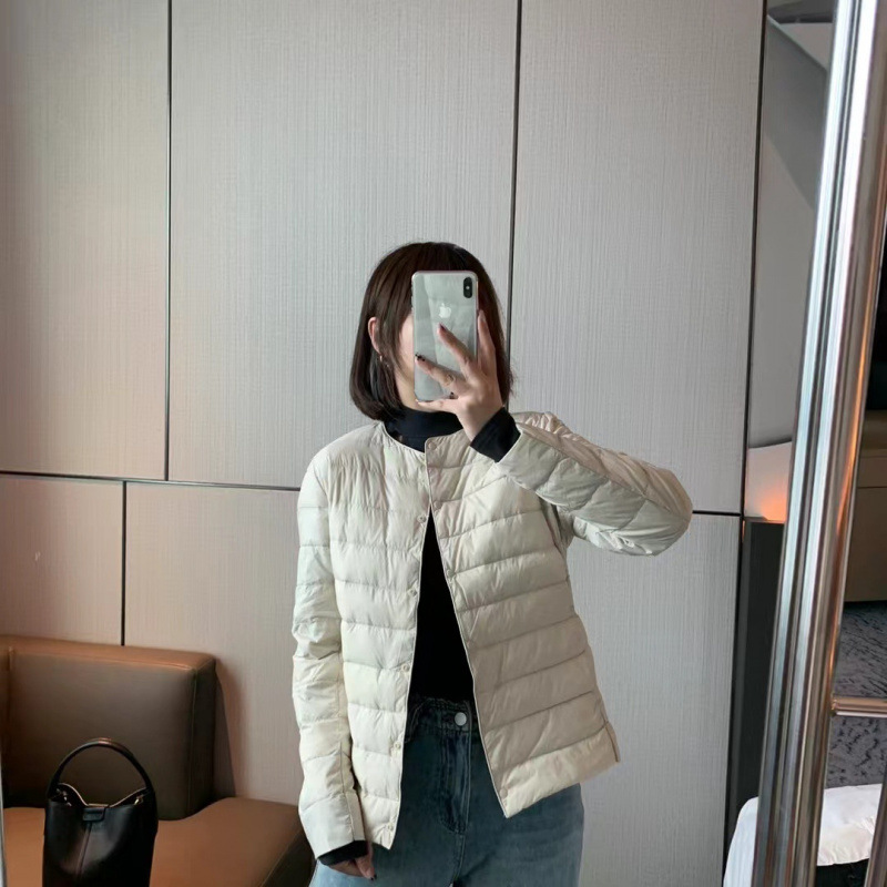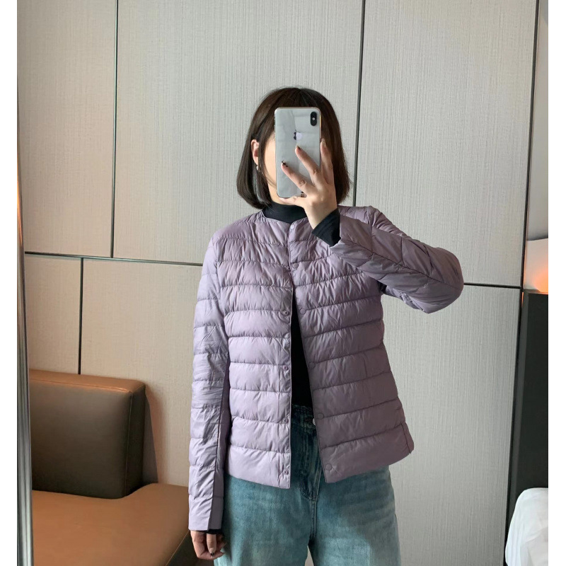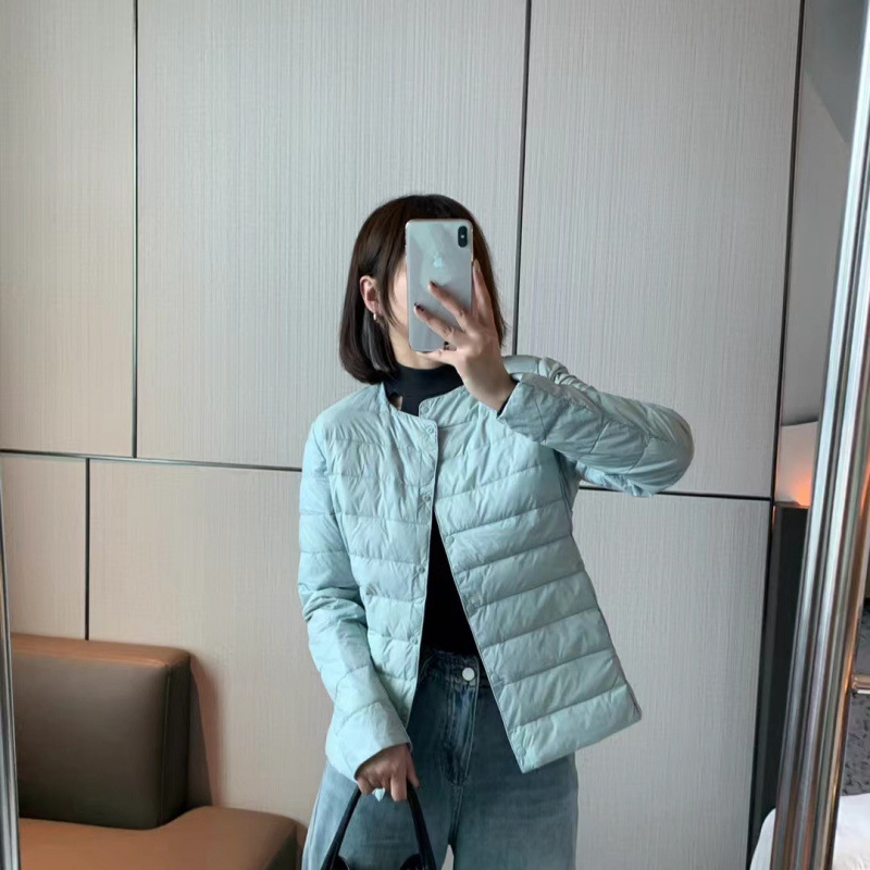 egg.unique 여성용 경량 라운드넥 다운 재킷, 따뜻한 숏 브이넥, 칼라리스 이너웨어 겨울 재킷스토어 가기