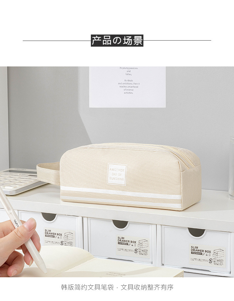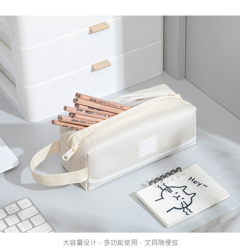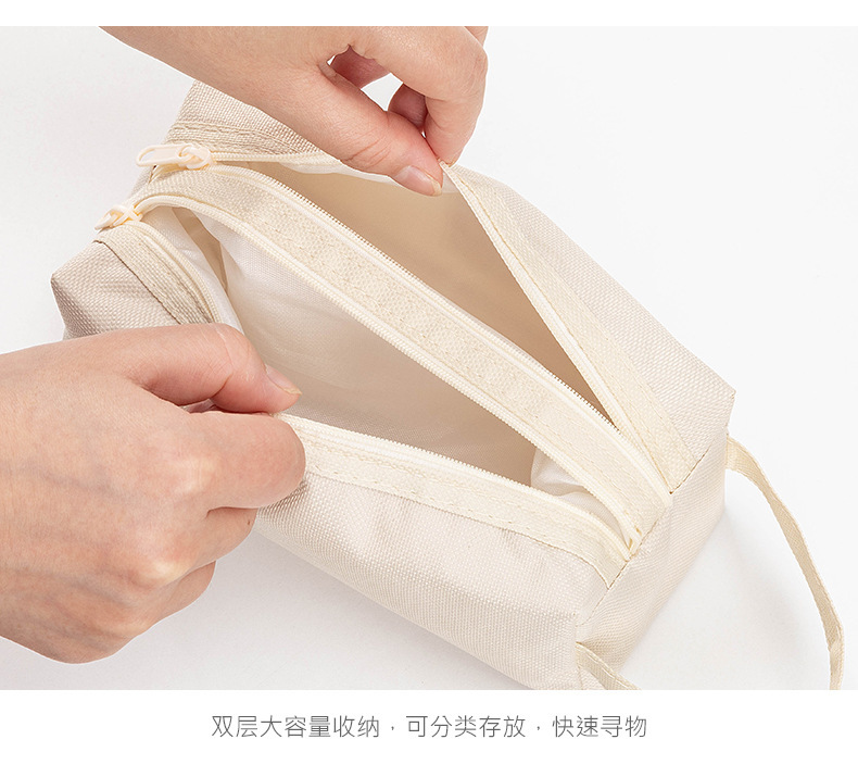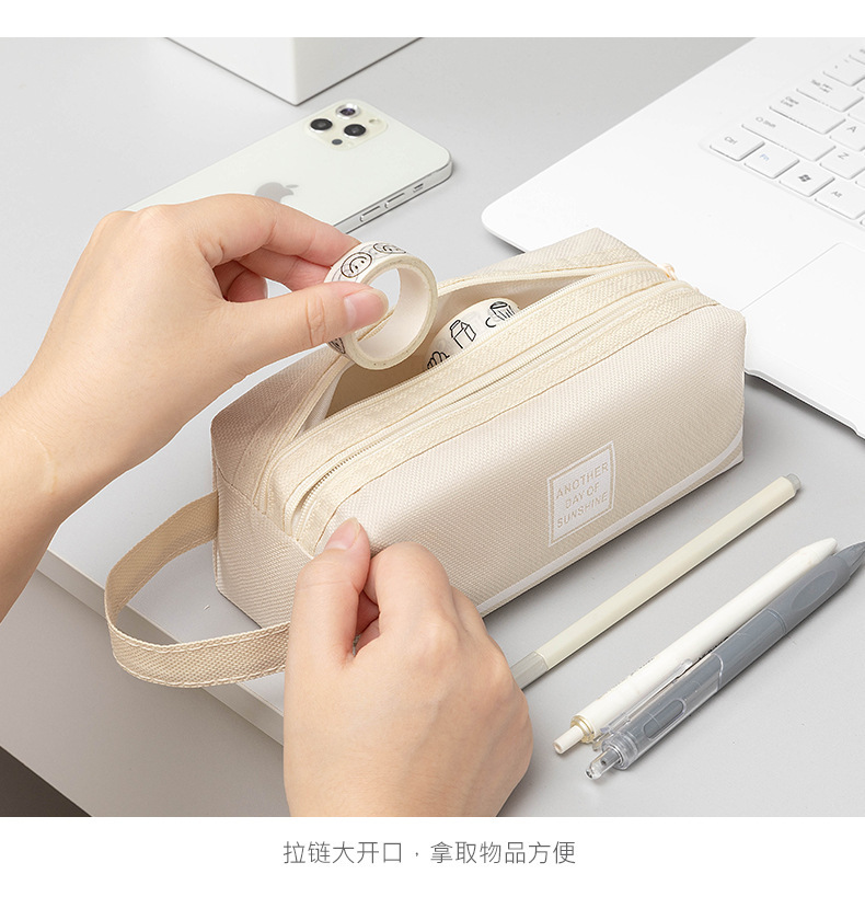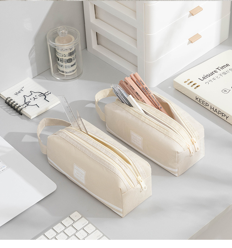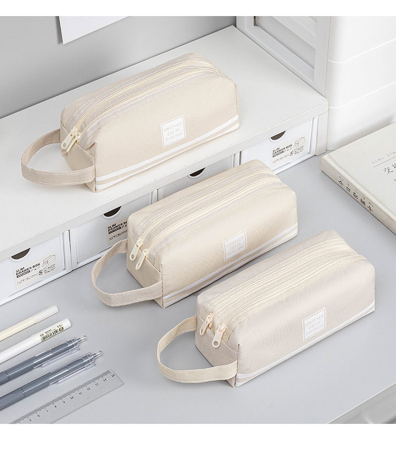 대용량 간단한 더블 지퍼 더블 솔리드 컬러 한국식 학생 휴대용 문구 연필 보관 가방