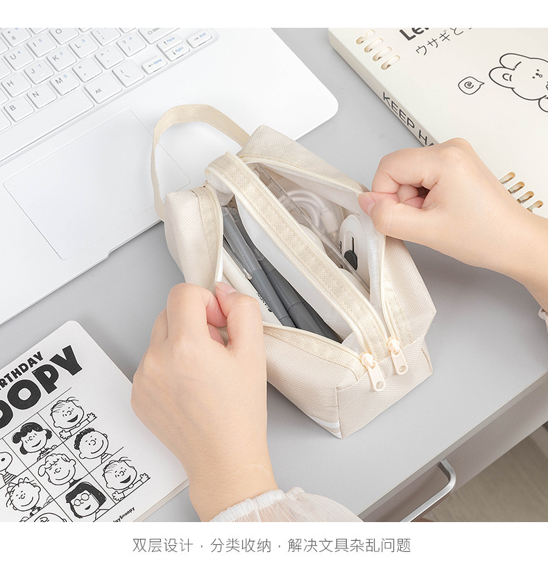 대용량 간단한 더블 지퍼 더블 솔리드 컬러 한국식 학생 휴대용 문구 연필 보관 가방스토어 가기
