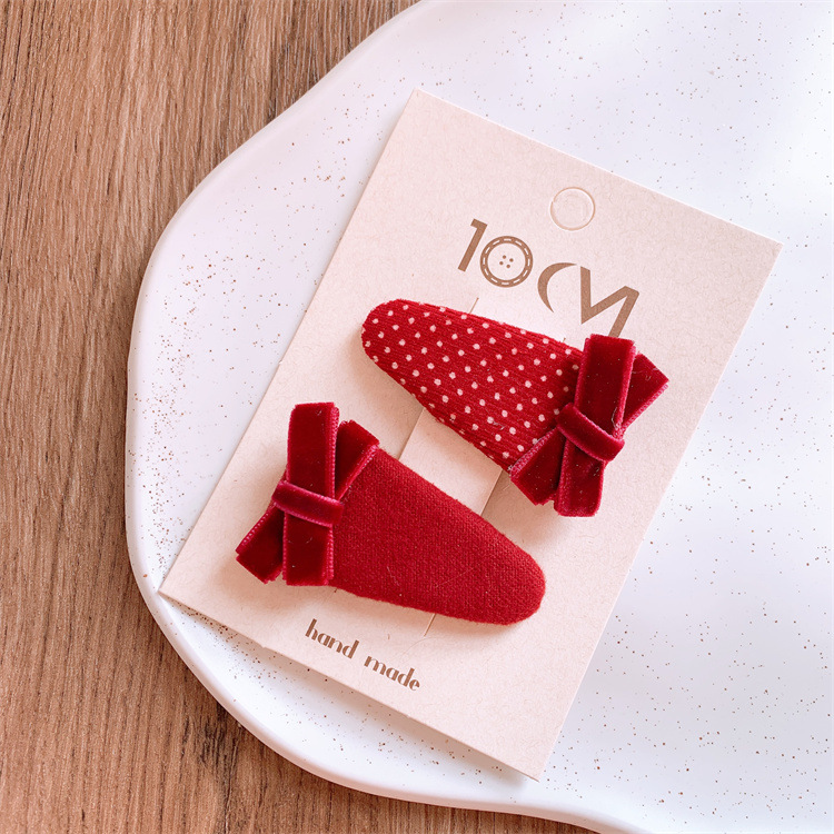 새해 레드 웨이브 닷 플레이드 스타 활 머리핀 심플 뱅 사이드 브로큰 헤어핀 헤드웨어 헤어 액세서리스토어 가기