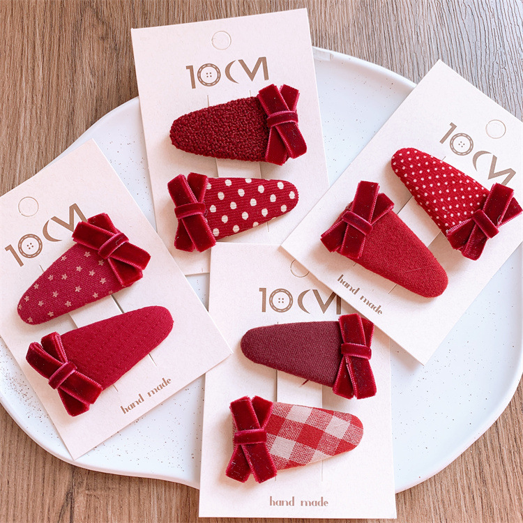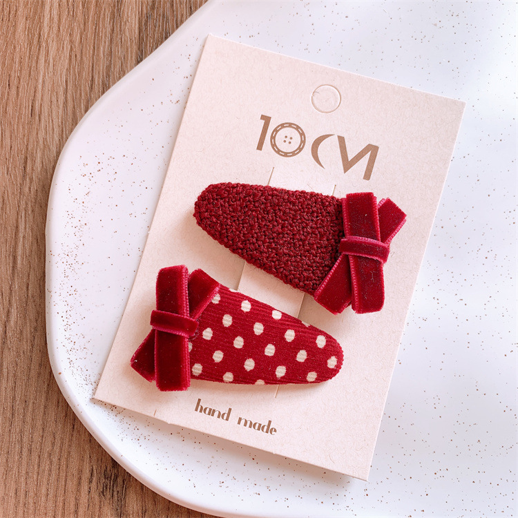 새해 레드 웨이브 닷 플레이드 스타 활 머리핀 심플 뱅 사이드 브로큰 헤어핀 헤드웨어 헤어 액세서리