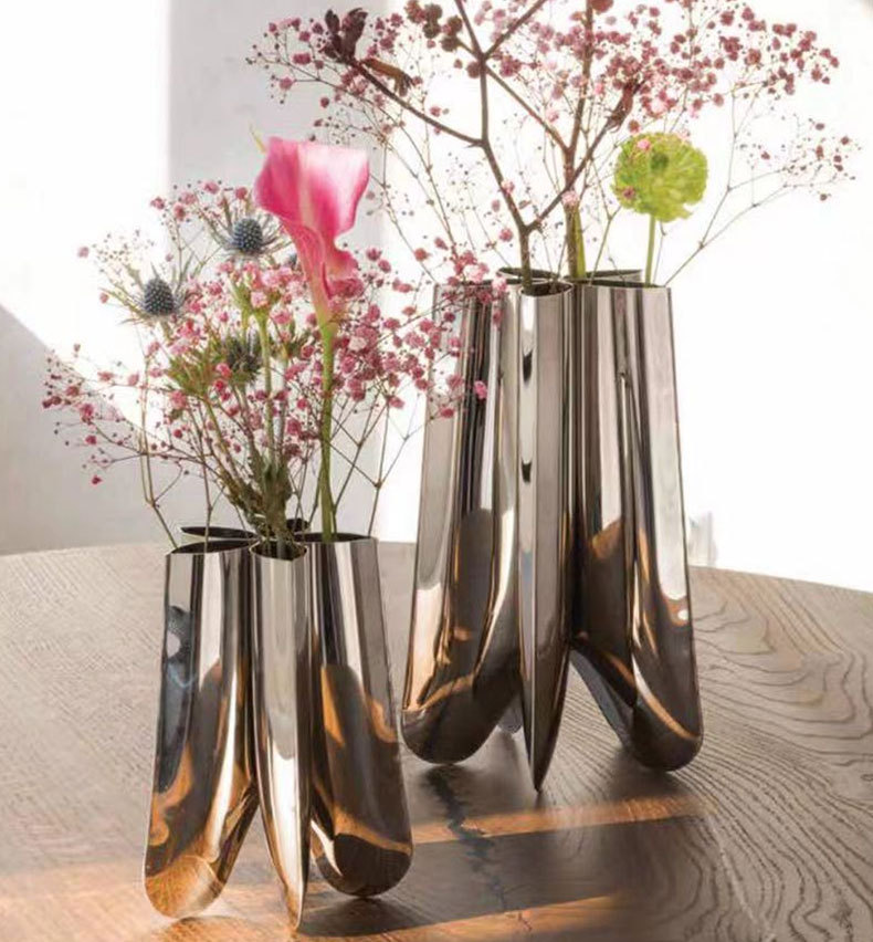 호텔 전시 홀 거실 침실 홈 장식 꽃 꽃병 장식을위한 현대 간단한 스테인레스 스틸 거울 꽃병 장식품
