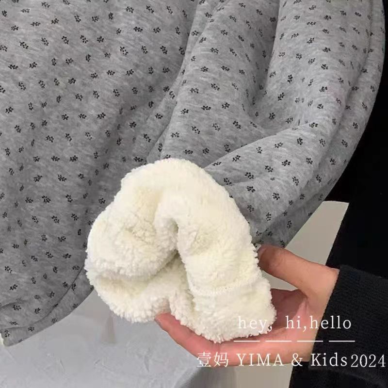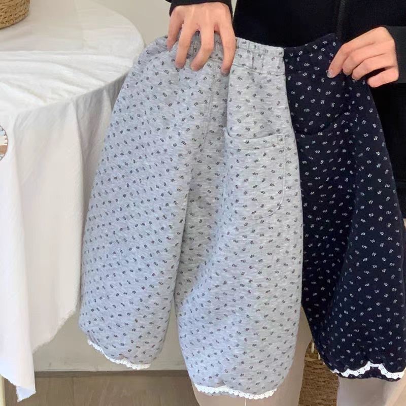 어린이 착용 소녀 바지 2024 겨울 새로운 어린이 빈티지 꽃 기모 두꺼운 캐주얼 바지스토어 가기