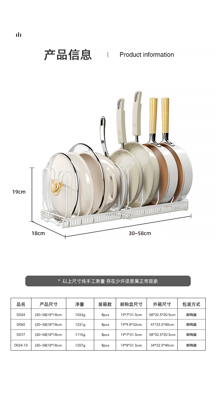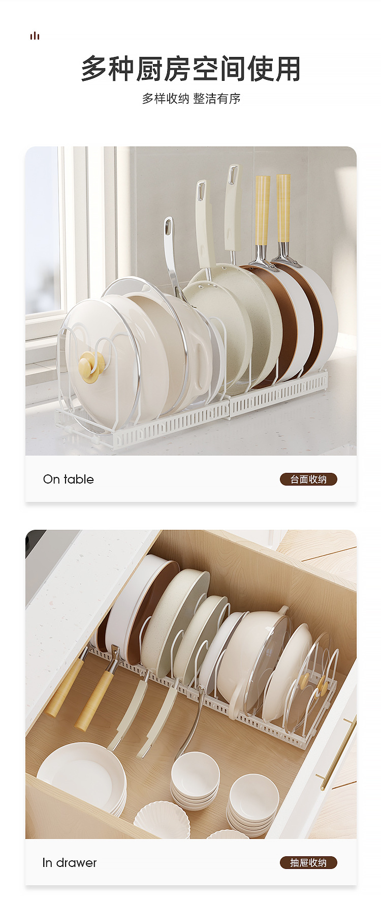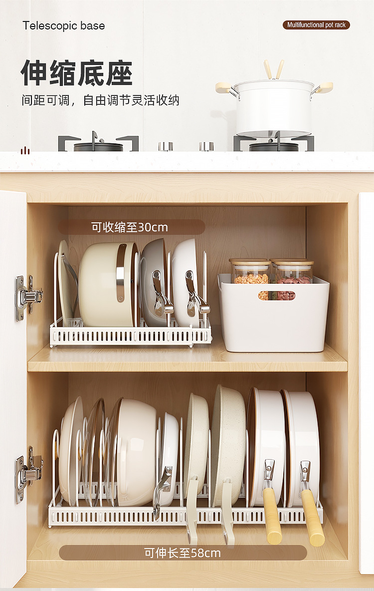 국경 개폐식 냄비 커버 랙 주방 다기능 도마 스토리지 랙 카운터 탑 화이트 미끄럼 방지 냄비 보관