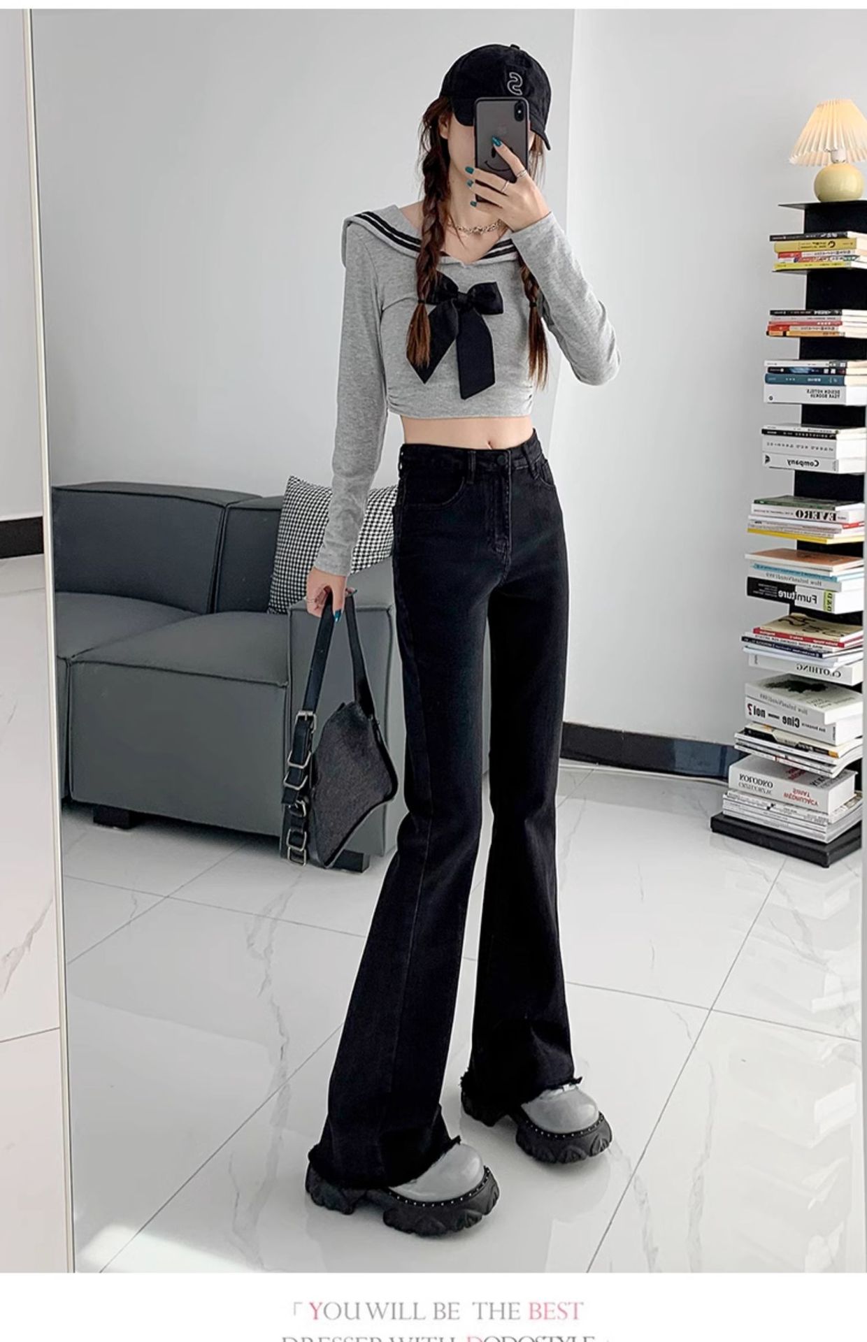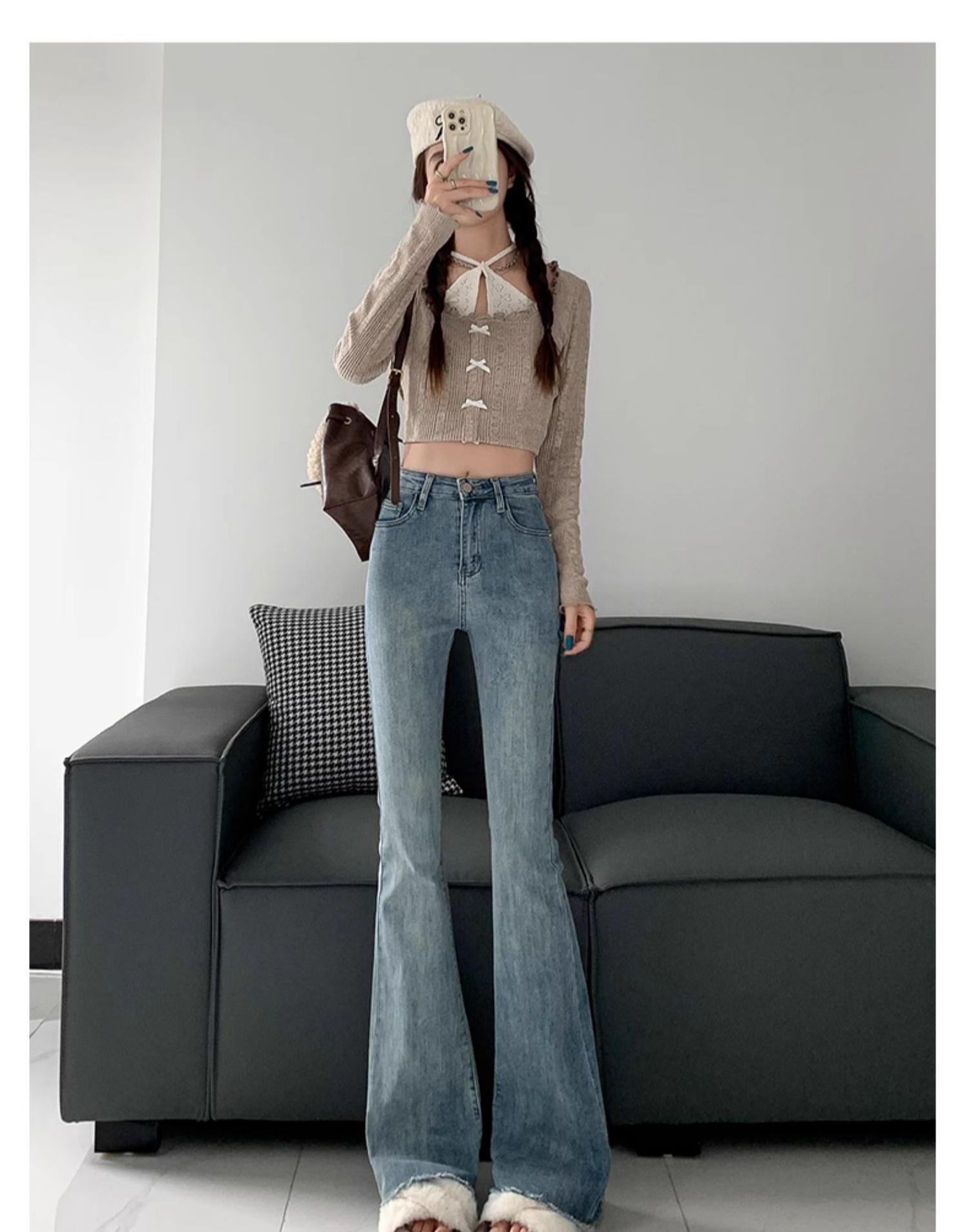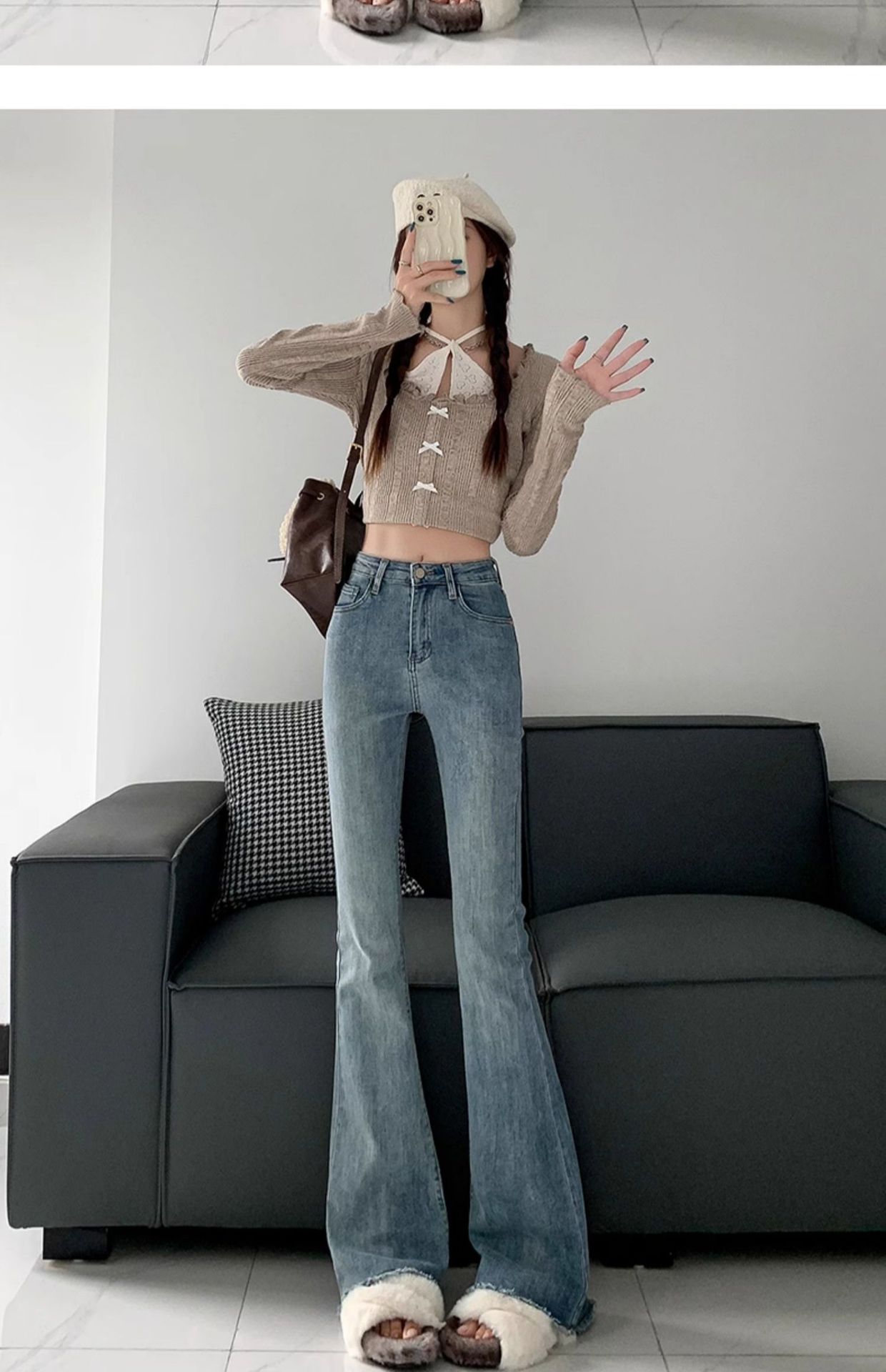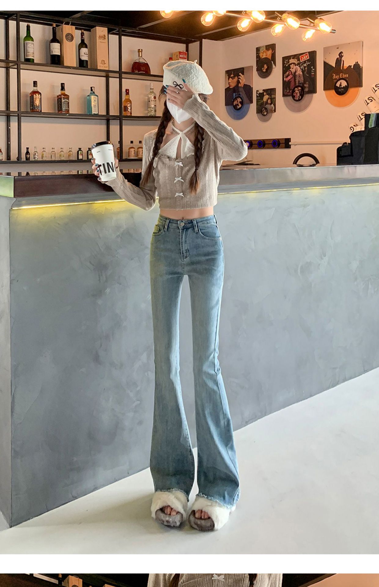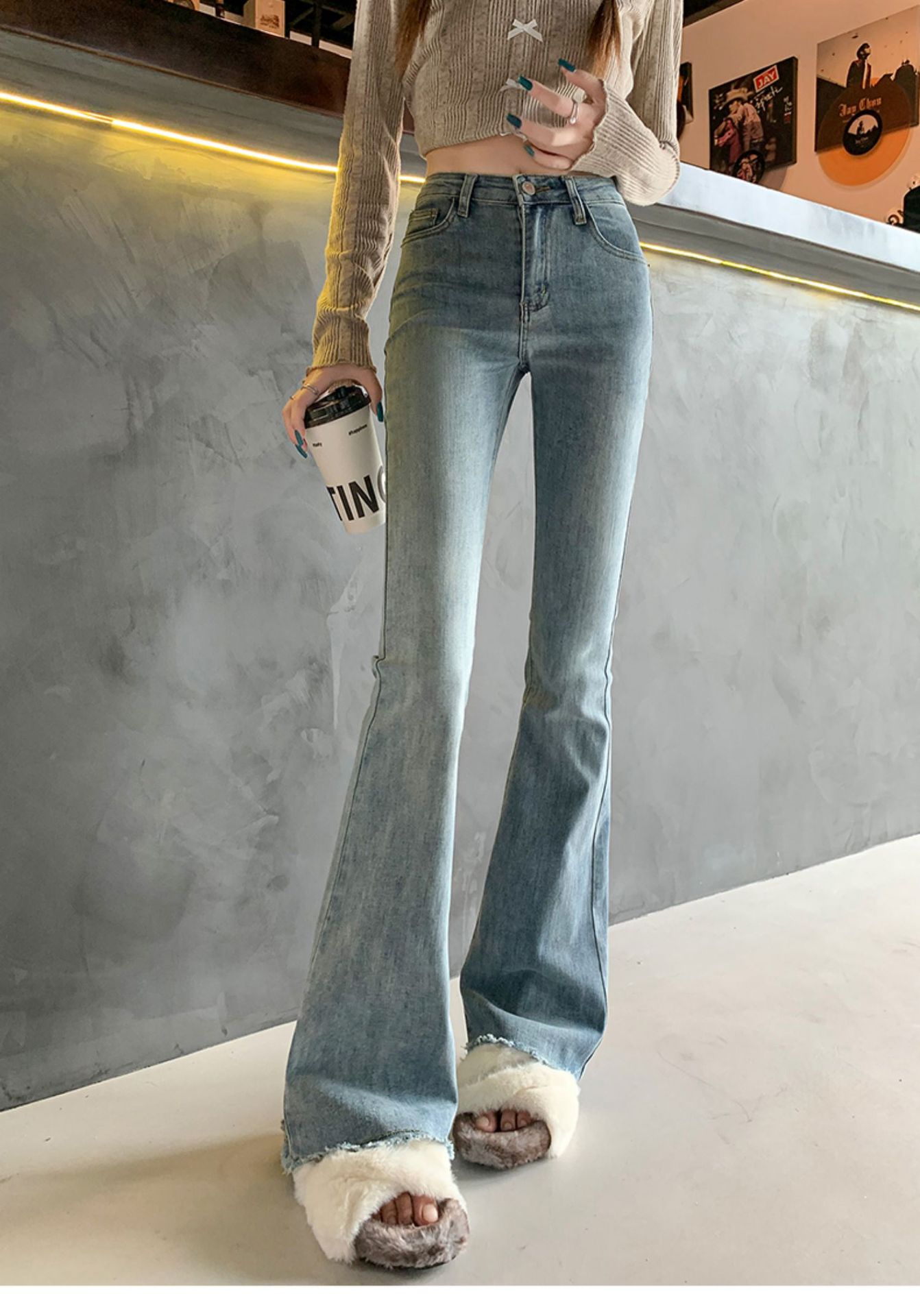 작은 높은 허리 슬림 레트로 마이크로 라 청바지 여성 디자인 뜨거운 소녀 자른 바지스토어 가기
