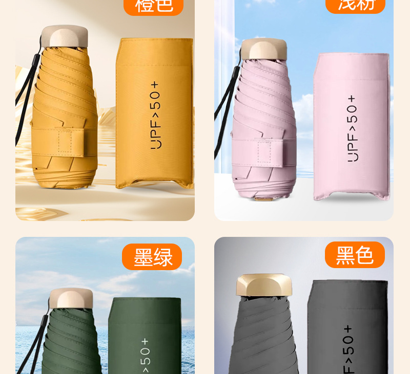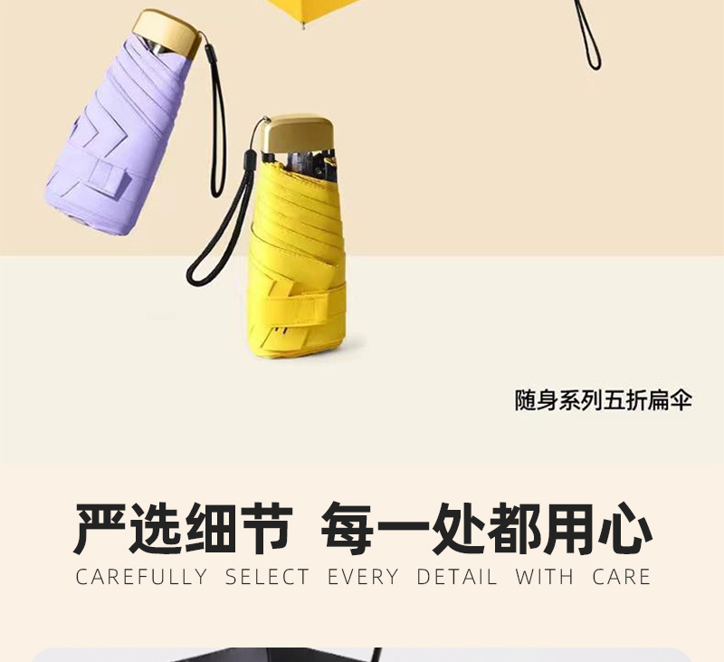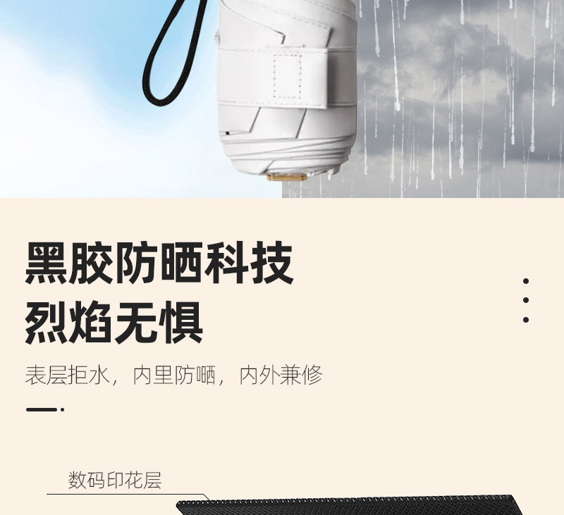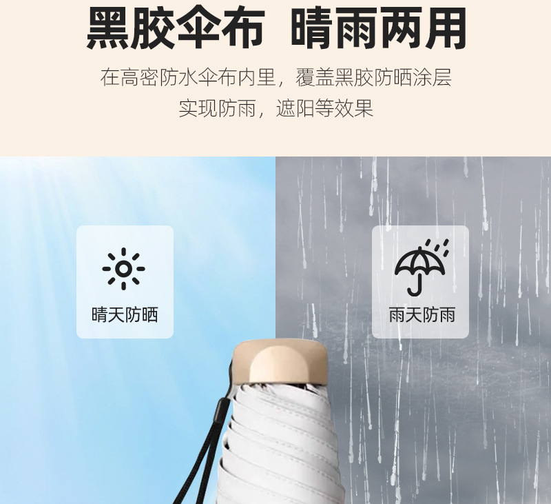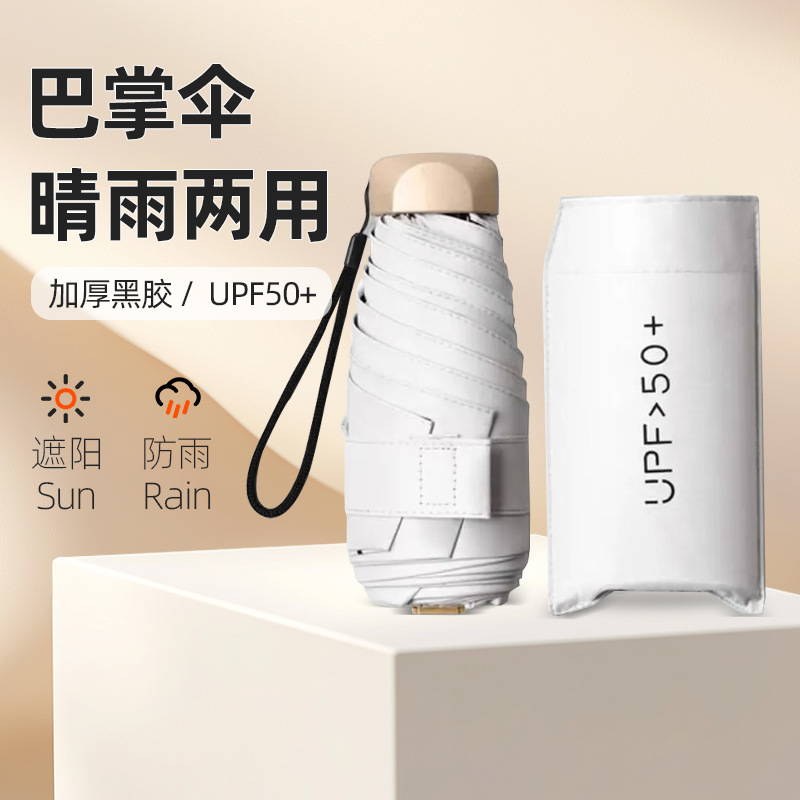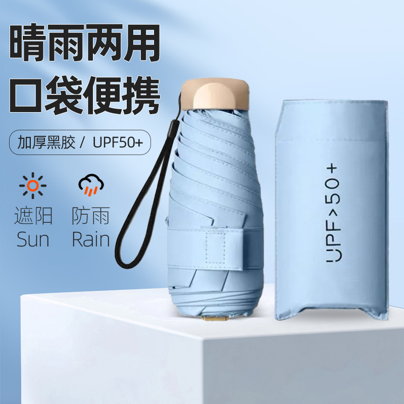 맑고 비오는 이중 목적 우산 초경량 미니 포켓 우산 여성용 자외선 방지 선 스크린 블랙 고무 플랫 5 배 우산스토어 가기