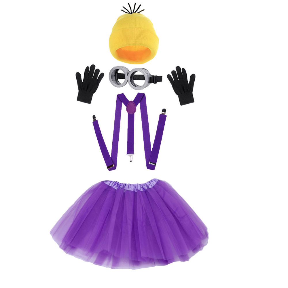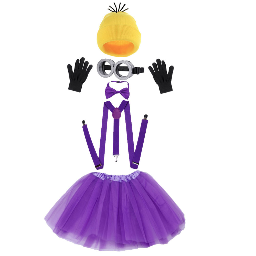 • 보라색 서스펜더 스커트, 안경, 머리띠, 모자 5종 세트