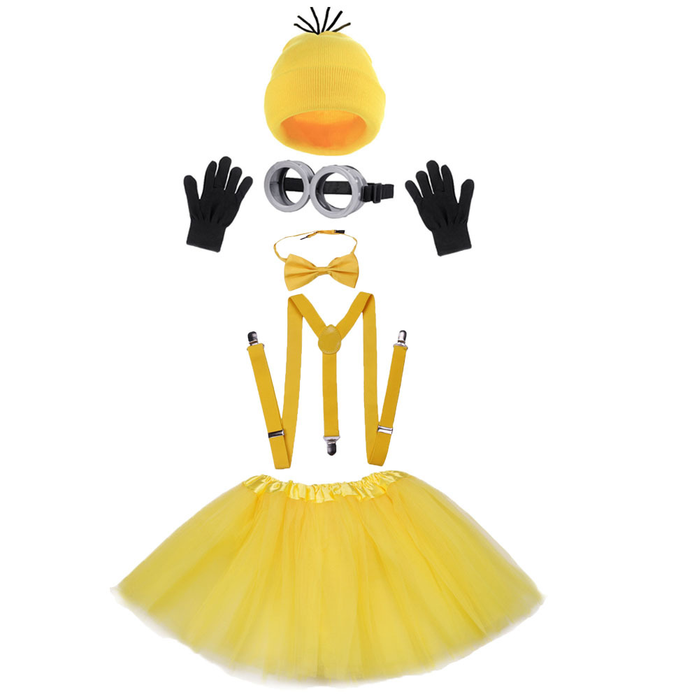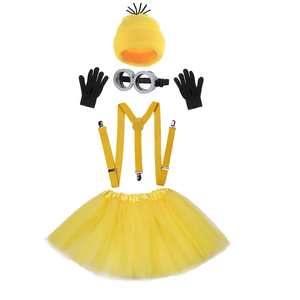 • 노란색 서스펜더 스커트, 안경, 머리띠, 6종 세트