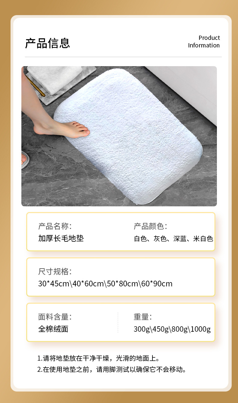 호텔 전용 바닥 타월, 세탁기 사용 가능, 두꺼운 터프티드 욕실 흡수성 바닥 매트, 욕실 문 미끄럼 방지 발 매트스토어 가기
