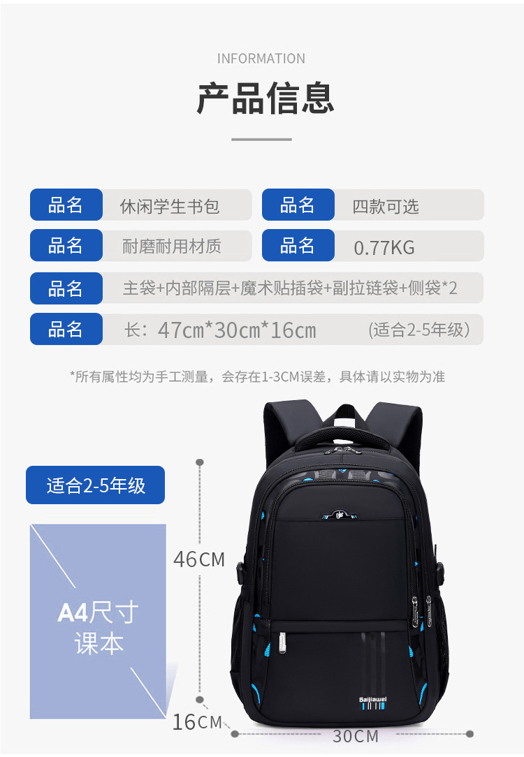 한국판 캠퍼스 부담 감소 책가방 초등학생 중학생 3 학년 5 개 6 개 대용량 배낭 아동용 가방