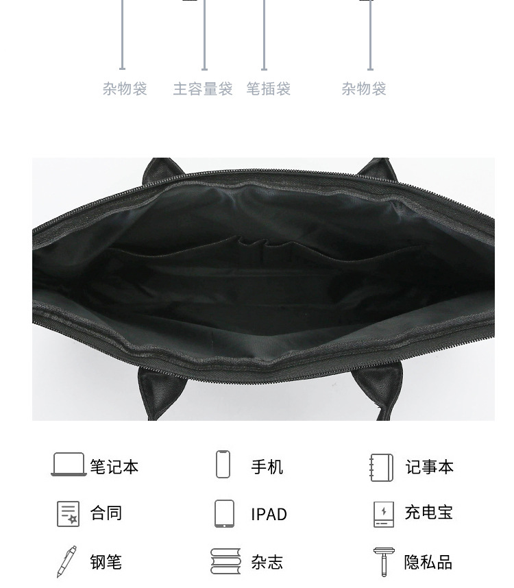 새로운 남성 비즈니스 회의 핸드백 방수 옥스포드 헝겊 가방 지퍼 서류 가방 비즈니스 회의스토어 가기