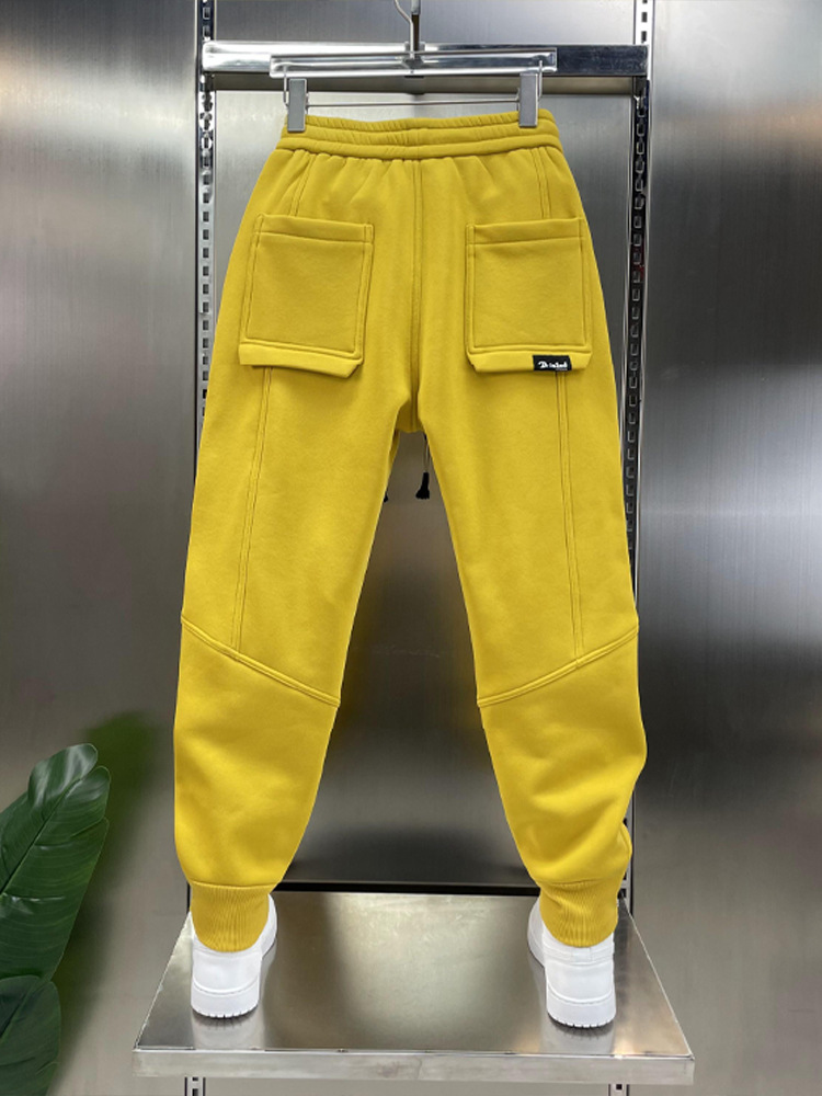 겨울 뉴 기모 운동복 남자 트렌디 올매치 스트레이트 크롭 바지 사이드 지퍼 캐주얼 바지 남자 할렌 바지
