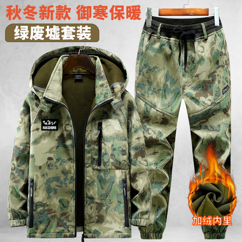가을과 겨울 기모 작업 옷 세트 남성용 두꺼운 착용 방지 더러운 노동 보호 메쉬 따뜻한 도구 야외 재킷스토어 가기
