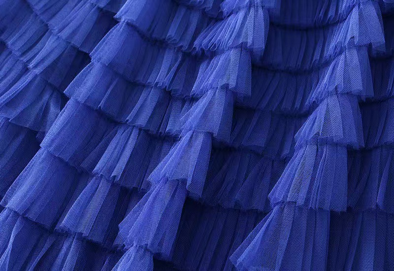 새로운 스타일의 케이크 스커트 메쉬 스커트 여성의 봄과 가을 우아한 베일 스커트 긴 높은 허리 퍼피 스커트 주름 긴 스커트